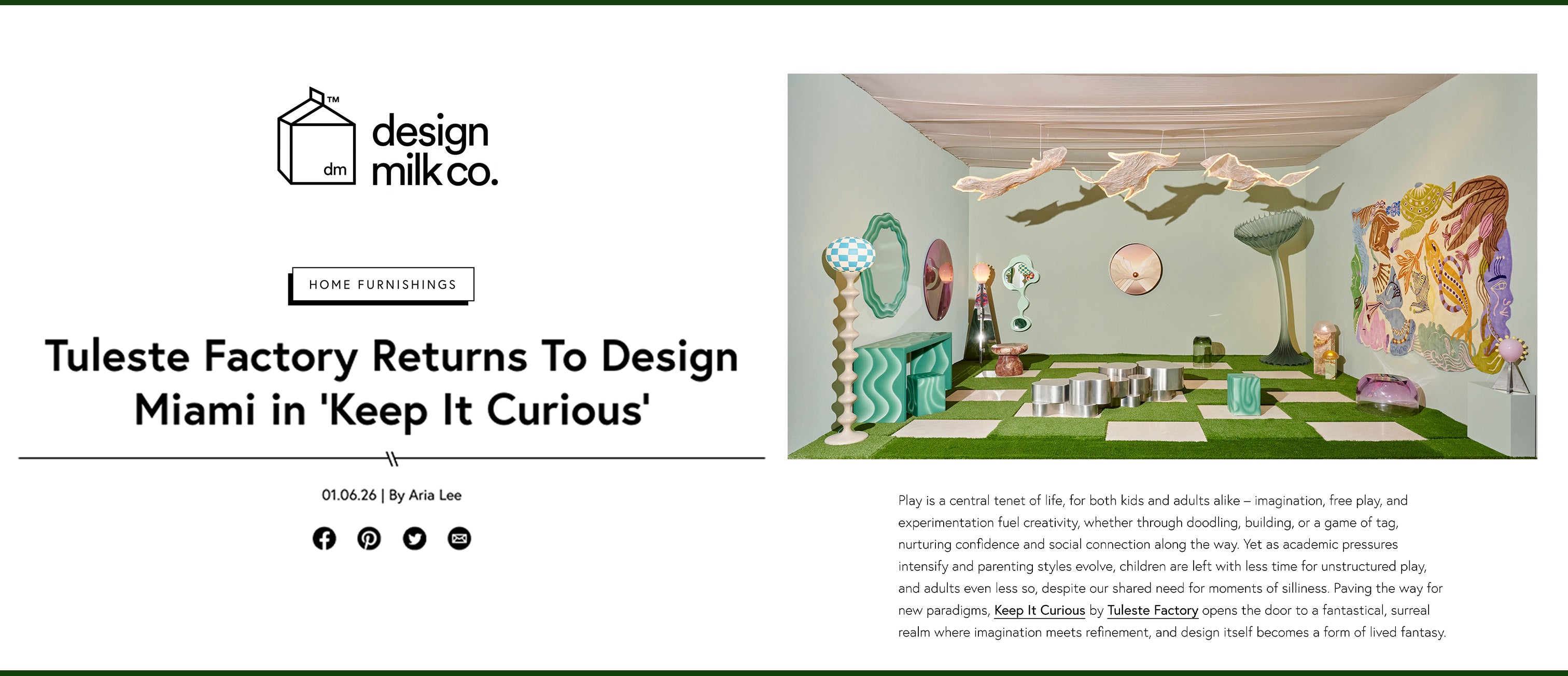 Founded by sisters Satu and Celeste Greenberg, Tuleste Factory curates vibrant, boundary-pushing experiences that engage the senses and cultivate meaningful connections between artists, collectors, and communities. Through their forward-thinking approach, the gallery creates a space where artistic expression and commerce merge seamlessly, offering a gateway to the next generation of collectible design and fine art.