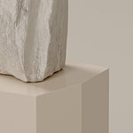 A refined pedestal that merges bold geometry with understated elegance. Its Ivory lacquered MDF surface offers a sleek, reflective finish, creating a striking interplay of light and shadow. With its sculptural silhouette and architectural presence, this piece functions both as a display platform and as a collectible design object.