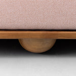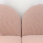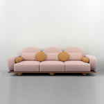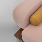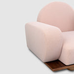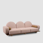 BEICE is a 3 seater sofa designed to mimic the feeling of sitting on cotton candy clouds. The combination of its powder pink color, arc shaped back rests, round edges and sphere walnut feet creates a dreamy, tender design. It is wide enough to lay down and soft enough to sleep on. BEICE is entirely hand-crafted, the base and feet are constructed from solid walnut and upholstery made from Kvadrat fabric.