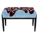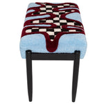 A contemporary bench inspired by 1960s design, featuring a hand-tufted multicolor wool seat and tapered wooden legs. Each piece is uniquely handmade, offering both comfort and decorative appeal.