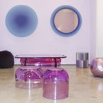 This Dew Drop is in a series of tables and stools which further play upon resin’s ability to effect light with volume and color. The thickness changes closer to the top creating a color gradient. Finishing with a lens porthole effect as you look down through the piece.