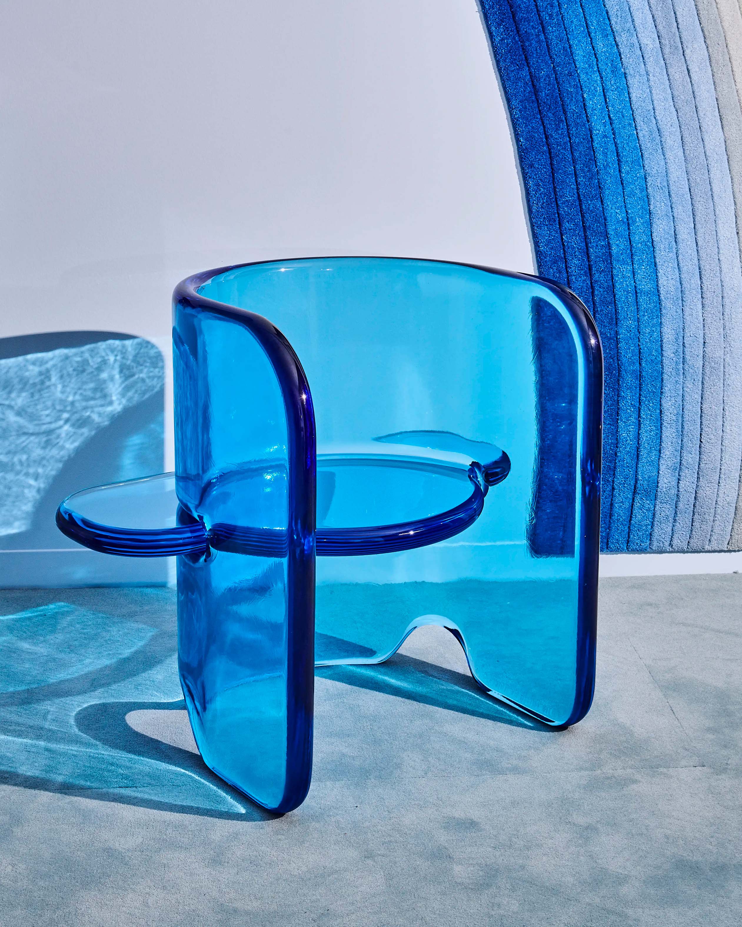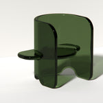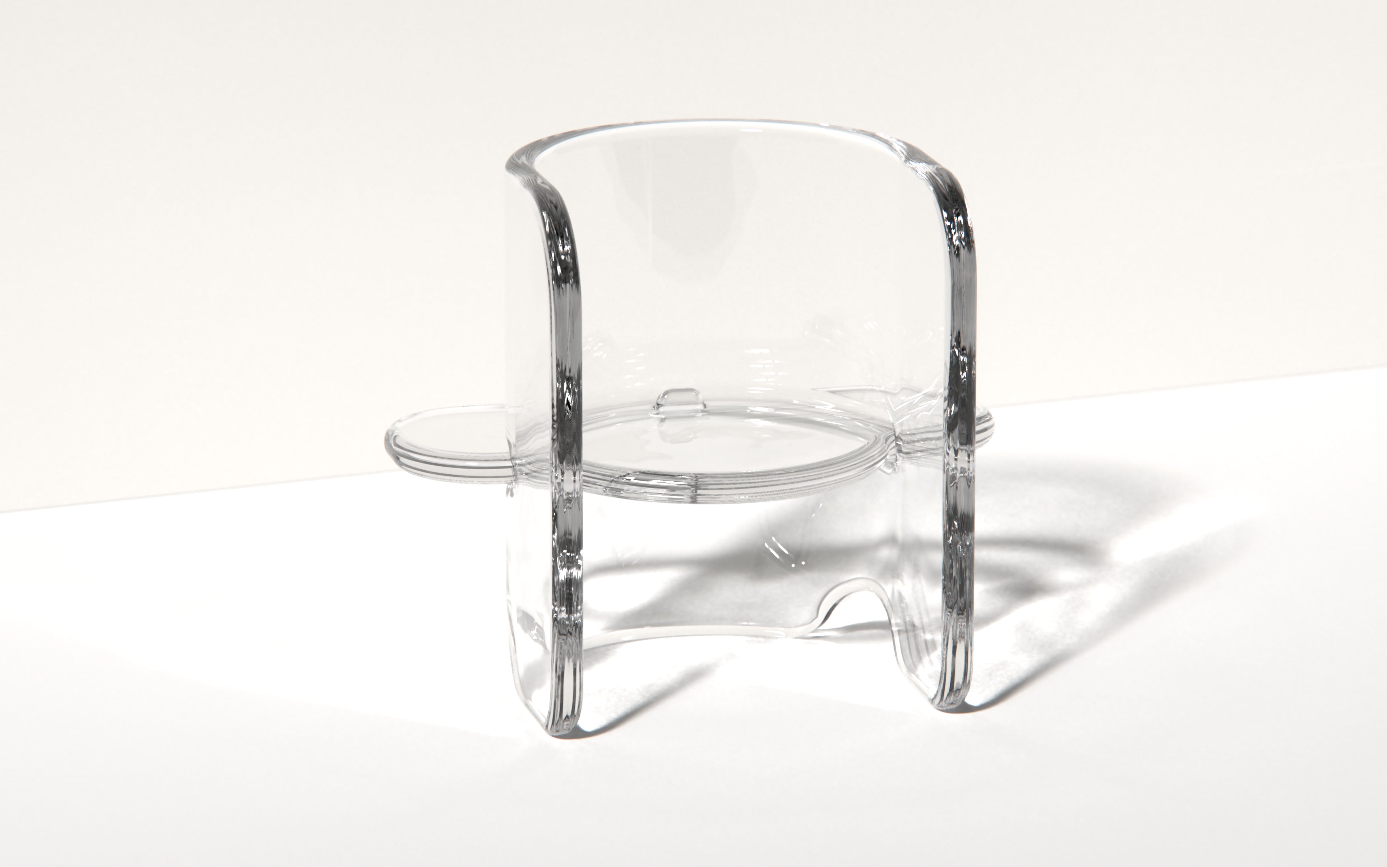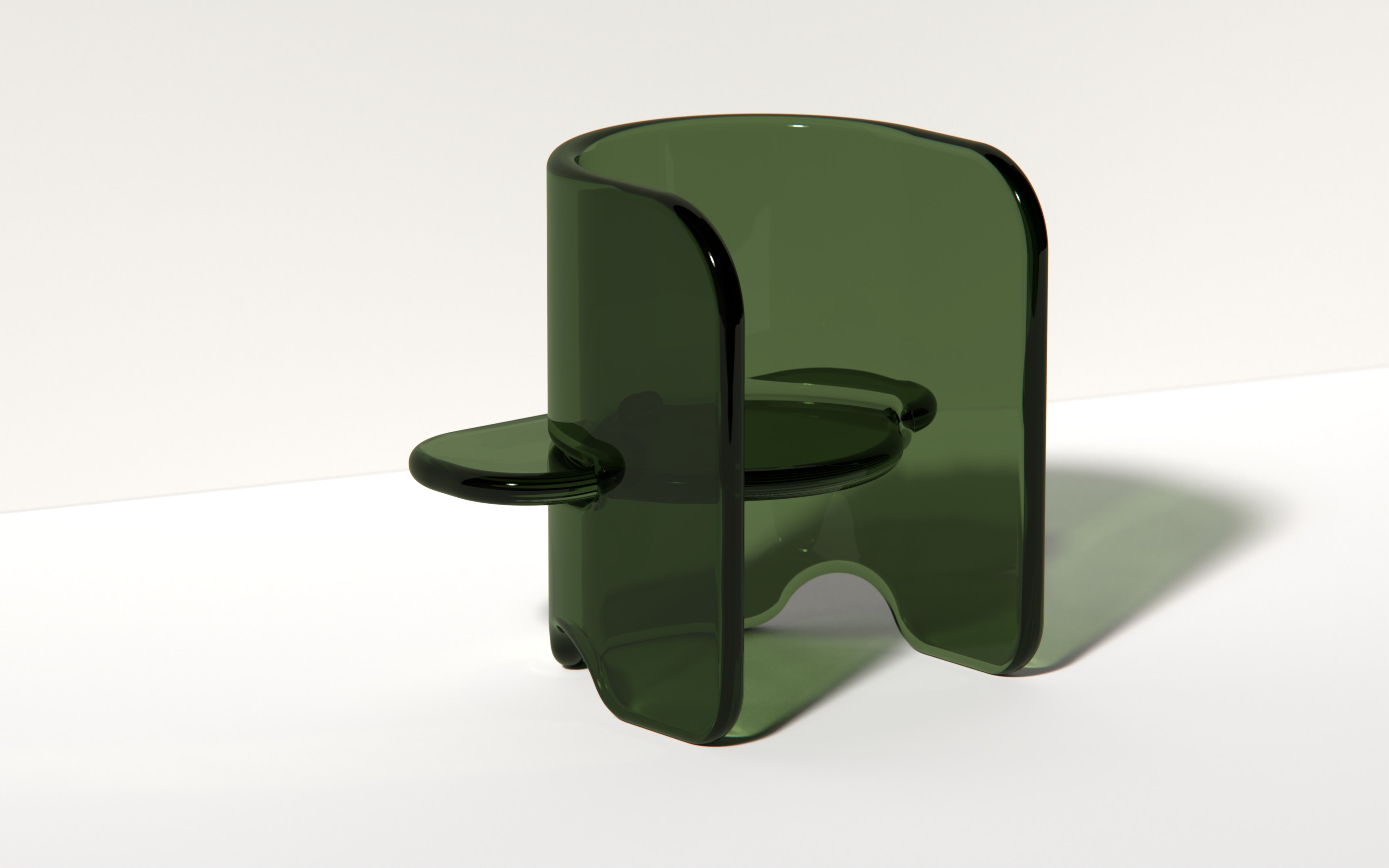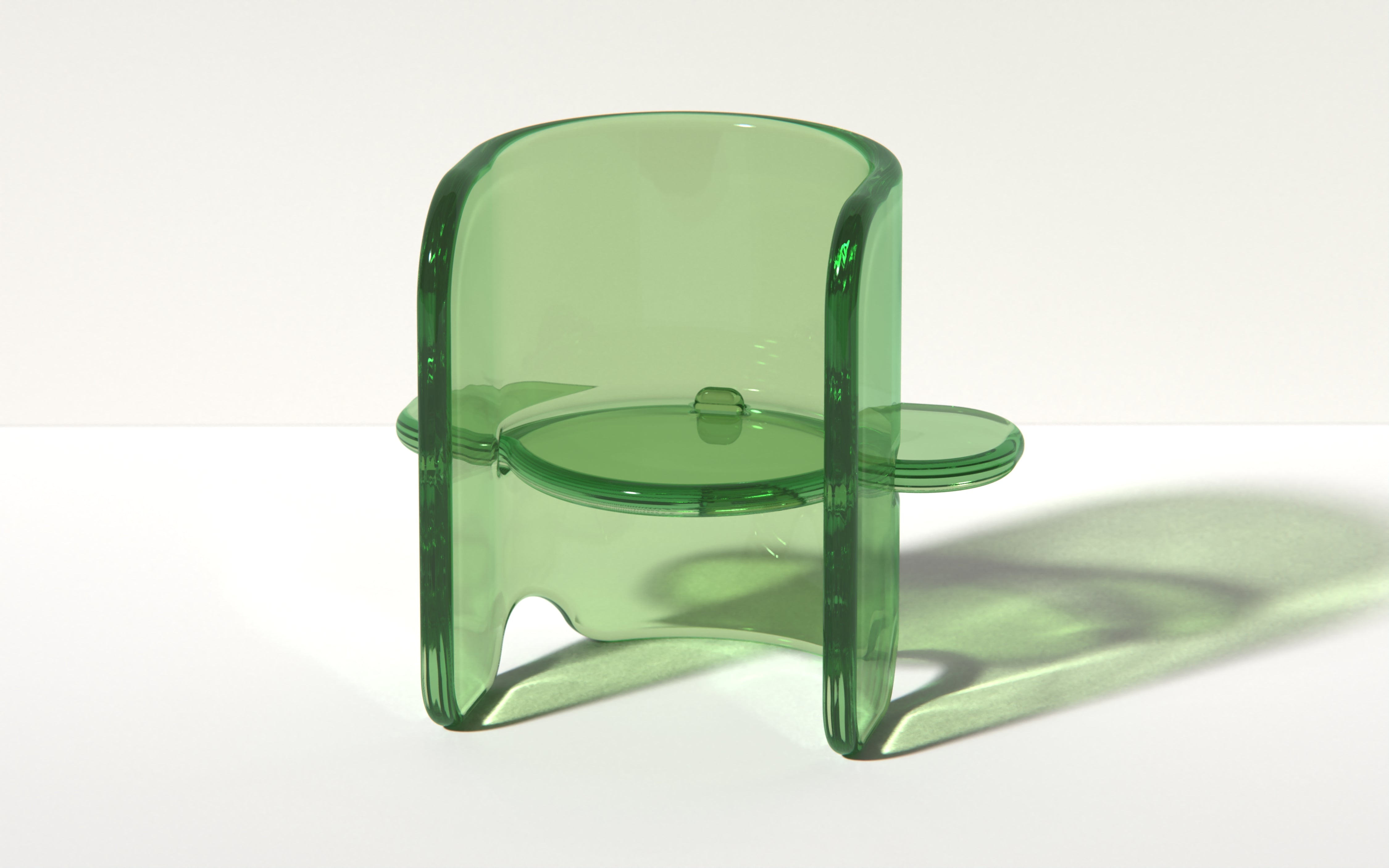 A continuation of the Plump series of sculptural furniture. The shapes play upon the effect that resin has as light is refracted through the solid parts. The chair is only held together through notches at each joint. There are no glues or fasteners.