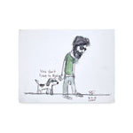 Fisher illustrates himself and a concerned dog in You Don't Have To, Brad. The minimal color and caption evoke a feeling of melancholy.