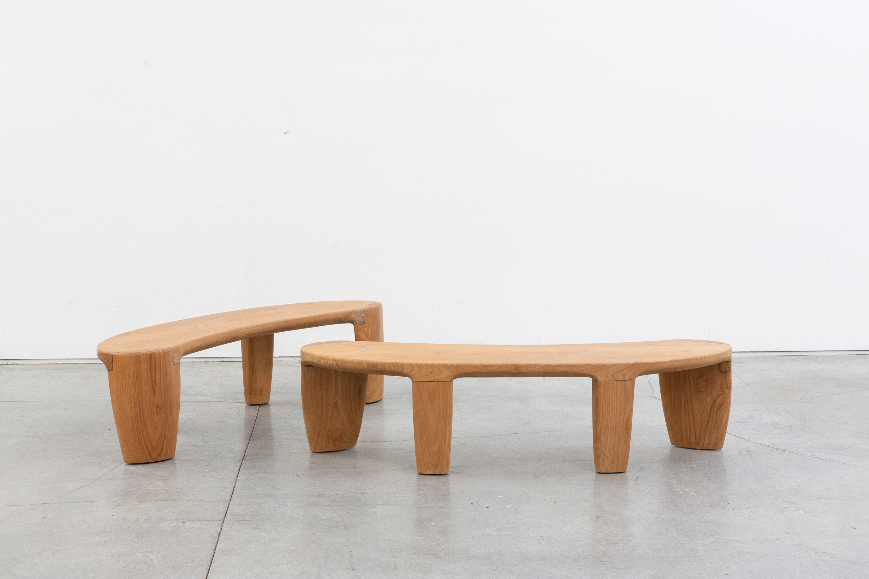 The Banana Bench features a gently curved seat and solid legs for a balanced, sculptural look. Its organic design fits beautifully in both indoor and outdoor spaces.