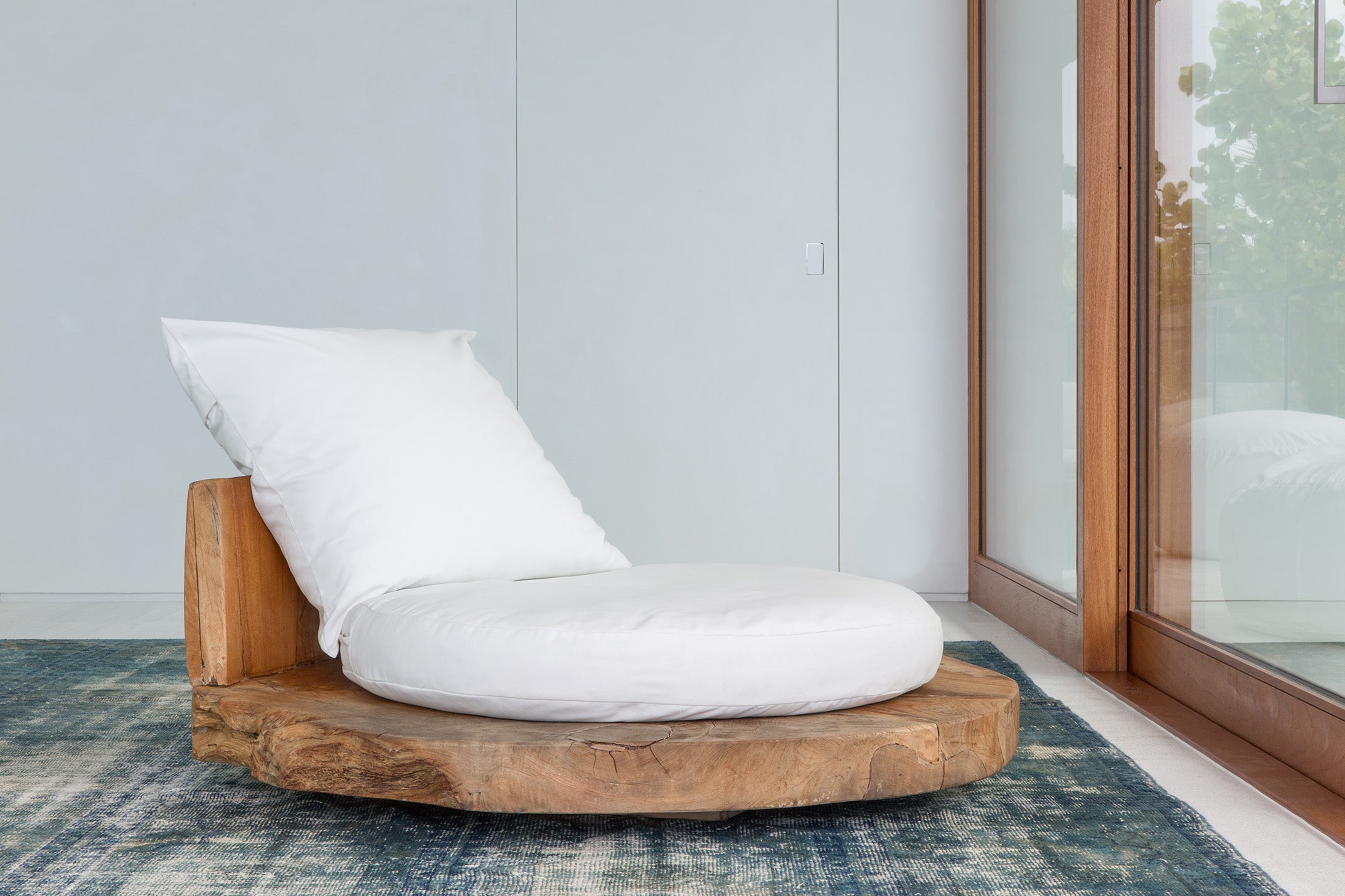 Solid pieces of salvaged wood are combined to make bold, organically shaped platforms. Designed for lounging these low seats can be used both in- and outdoors.