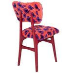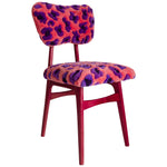 The 'Butterfly' dining chair features elegantly pink-stained beech legs and a fully upholstered seat and back, adorned with beautifully hand-tufted wool fabric.