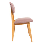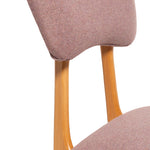 Dining chair with dark brown stained beech legs and upholstered seat and back in boucle Italian fabric.