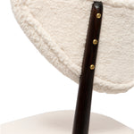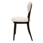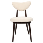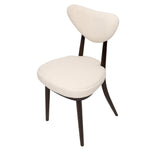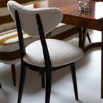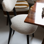 Dining chair with dark brown stained beech legs and upholstered seat and back in boucle Italian fabric.