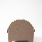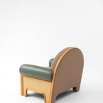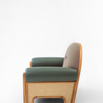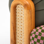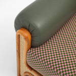 The N-gene Armchair is a reinterpretation of an armchair designed by Merve’s uncle, interior designer, Engin, in the 1970’s. The N-Gene is re-envisioned with caning, and is upholstered in a checker textile with olive leather arms. This entirely handcrafted armchair is extremely comfortable and is made of ayous tree.