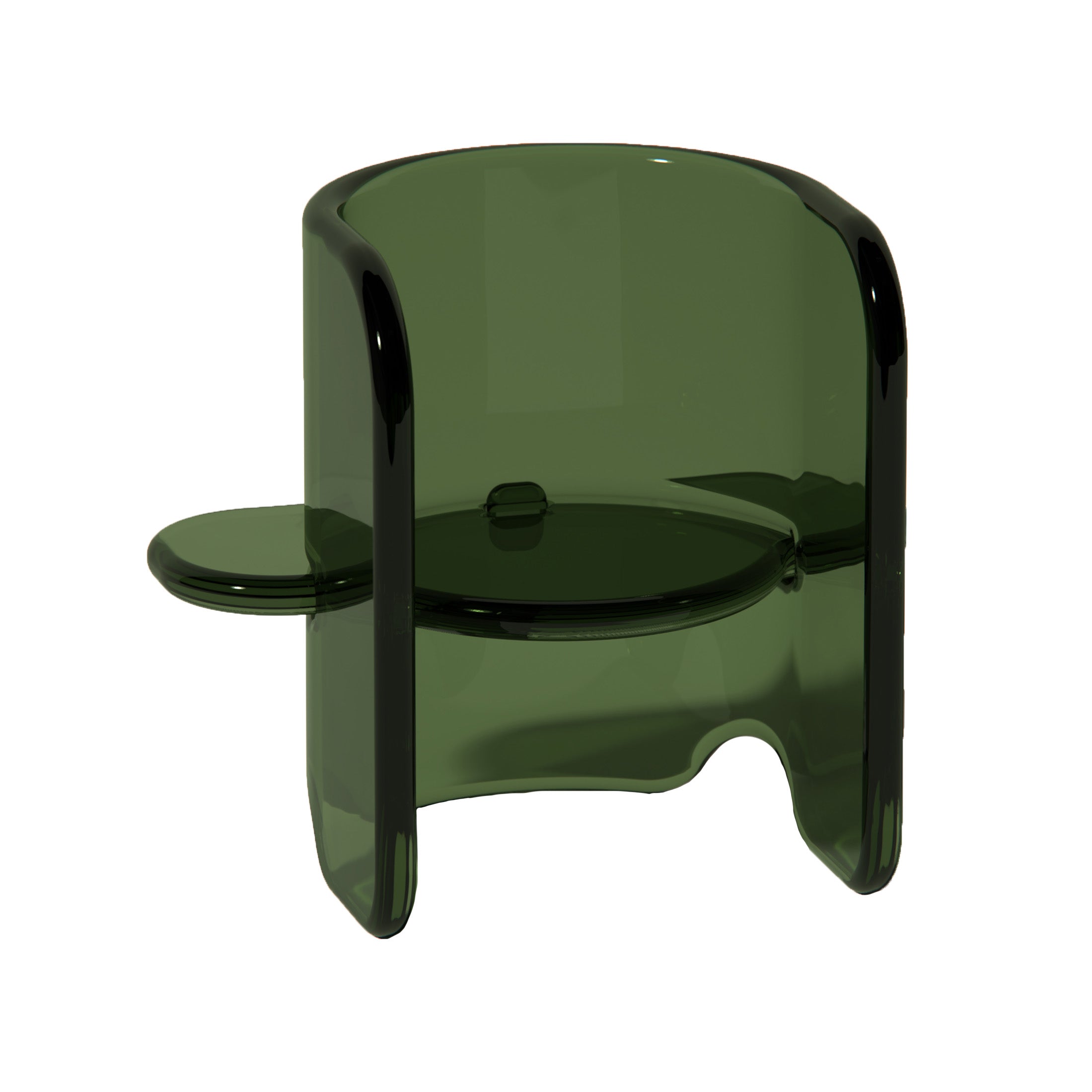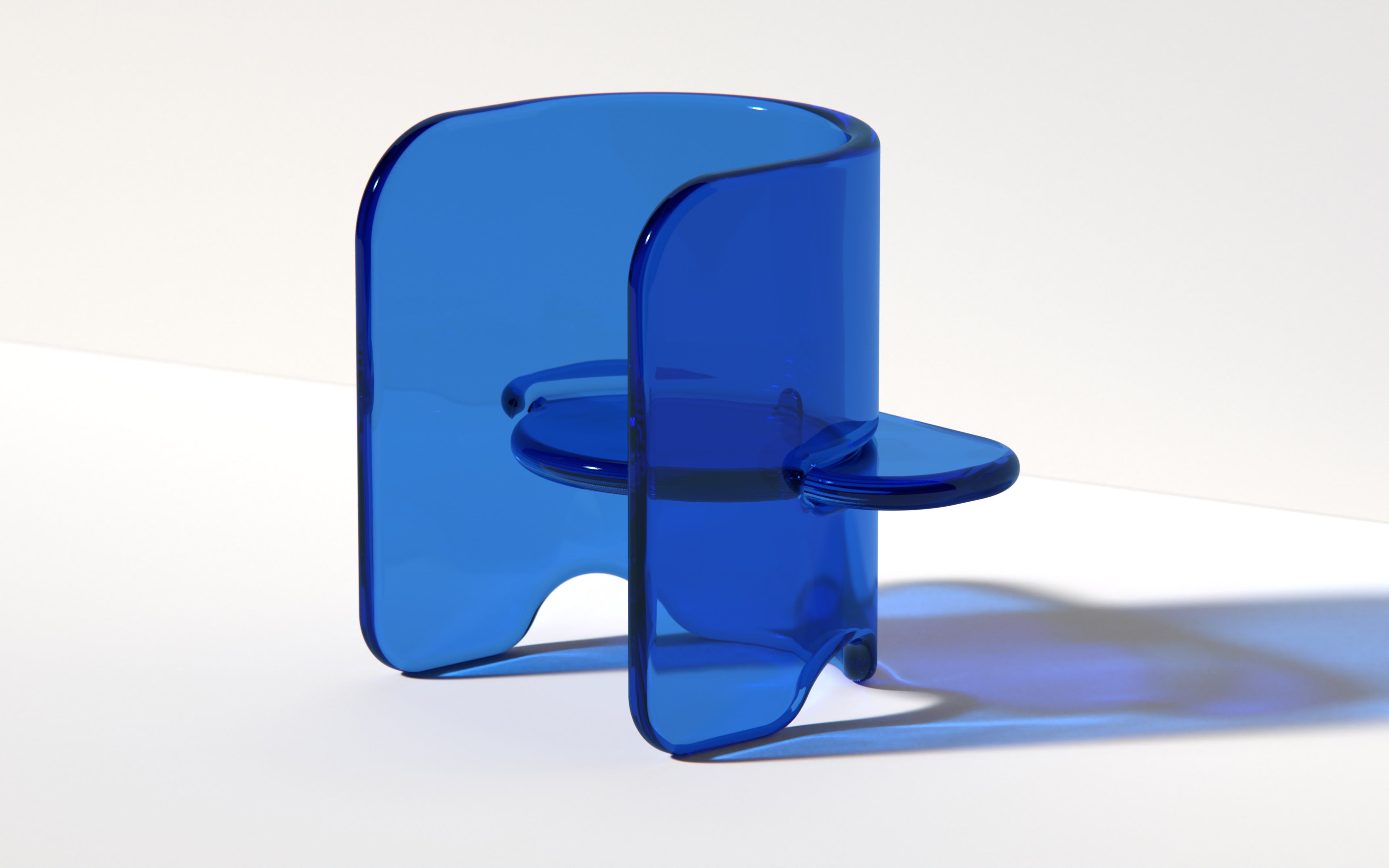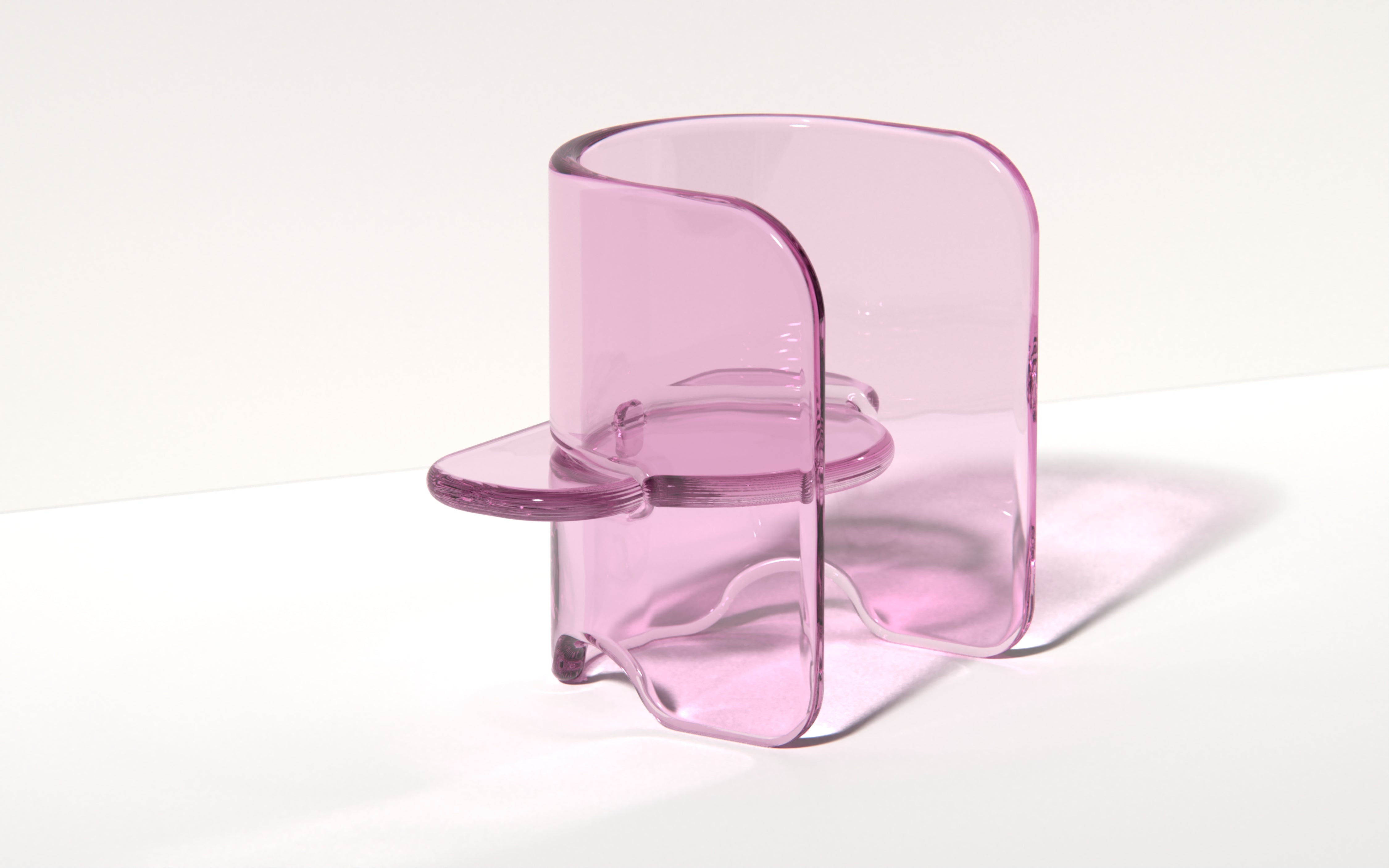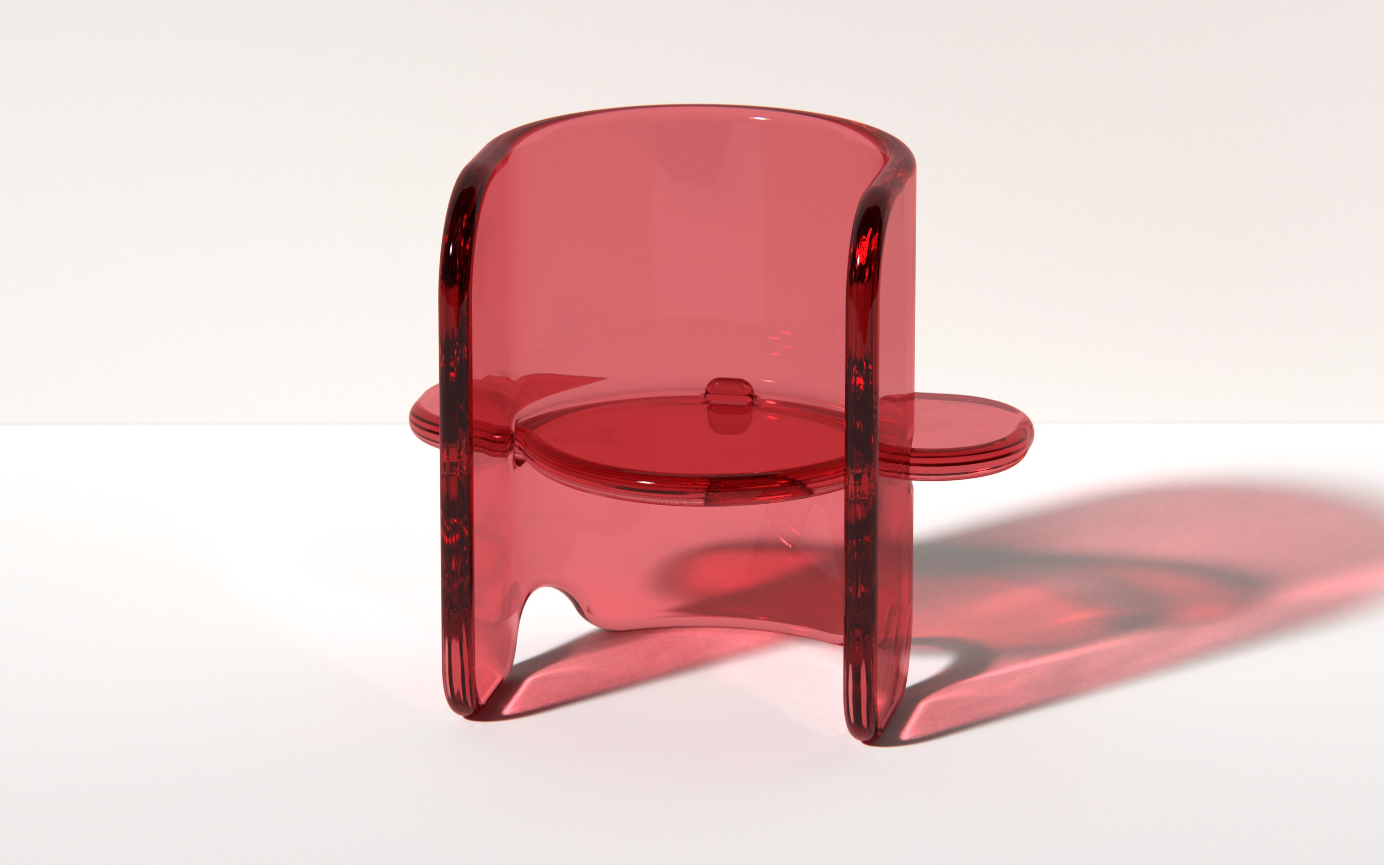 A continuation of the Plump series of sculptural furniture. The shapes play upon the effect that resin has as light is refracted through the solid parts. The chair is only held together through notches at each joint. There are no glues or fasteners.
