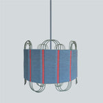 A sculptural lighting piece combining steel, various cords, and glass. The lamp features a distinctive woven cord pattern that wraps around its structure, creating a soft interplay of light and shadow while adding a tactile dimension to its form. Its balanced geometry and delicate detailing make it both a functional source of light and a striking design statement. Laura reimagines passementerie, blending tradition with contemporary design.