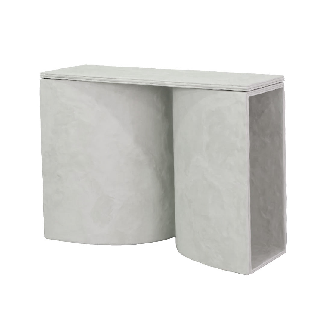 Bailey Fontaine creates this sculptural console from layers of cement, resulting in a stunning visual effect derives from the relationship between light & form. This design is fully customizable in any size and colors from Pantone reference.