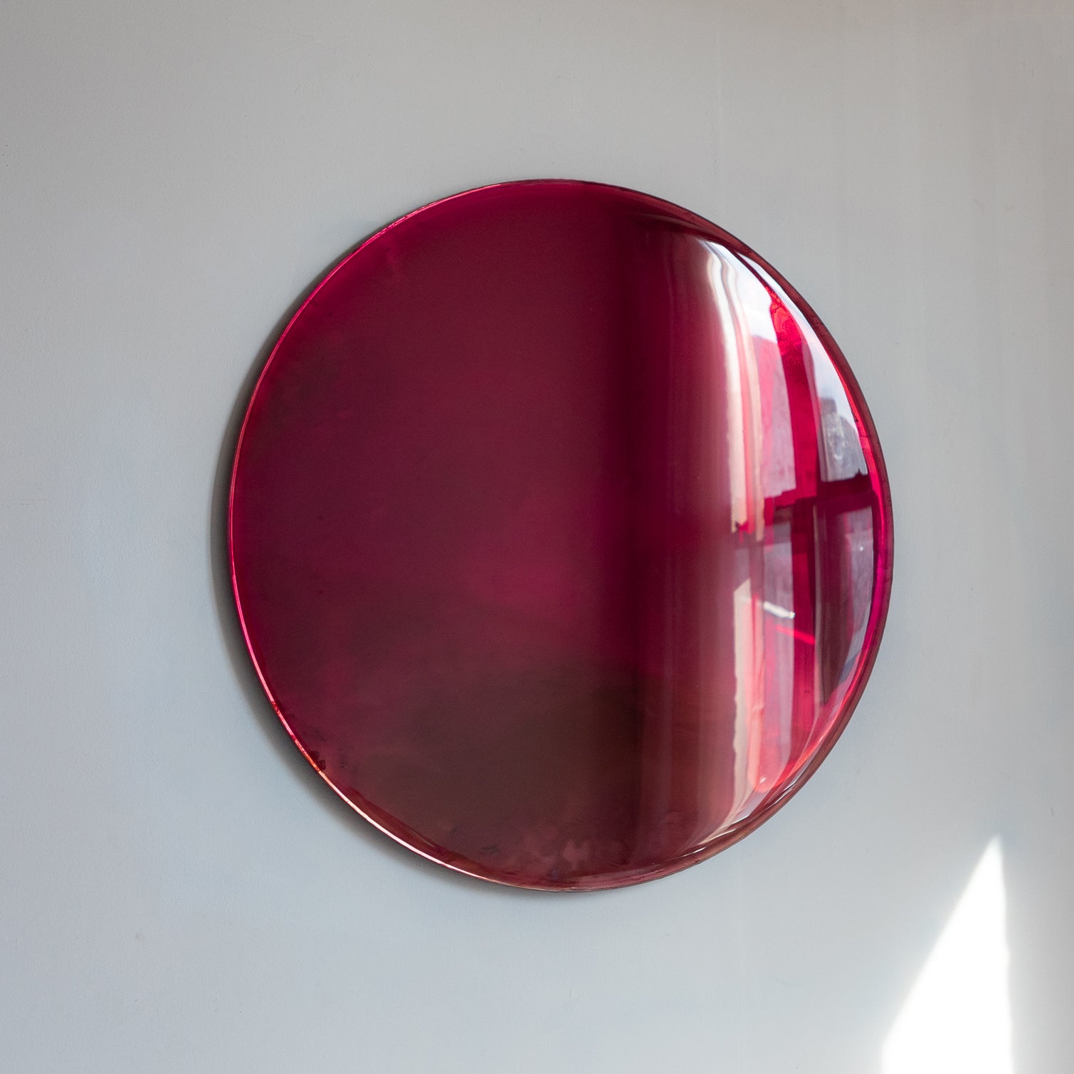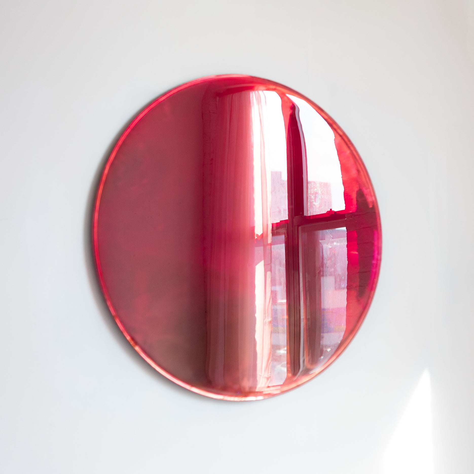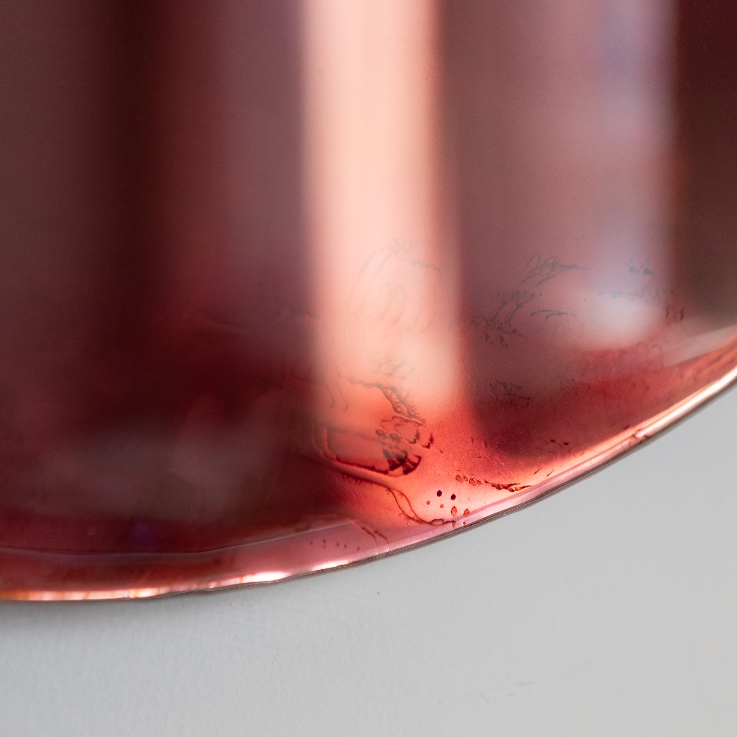 These functional art pieces build a color story through multiple layers of translucent tinted resin over a mirrored glass base. Throughout the day as the light changes, their vibrant hues shift in color and tone - kaleidoscopic portals offering new perspectives each time you view them. Courtney considers this her signature series and has been developing the technique for over two years.