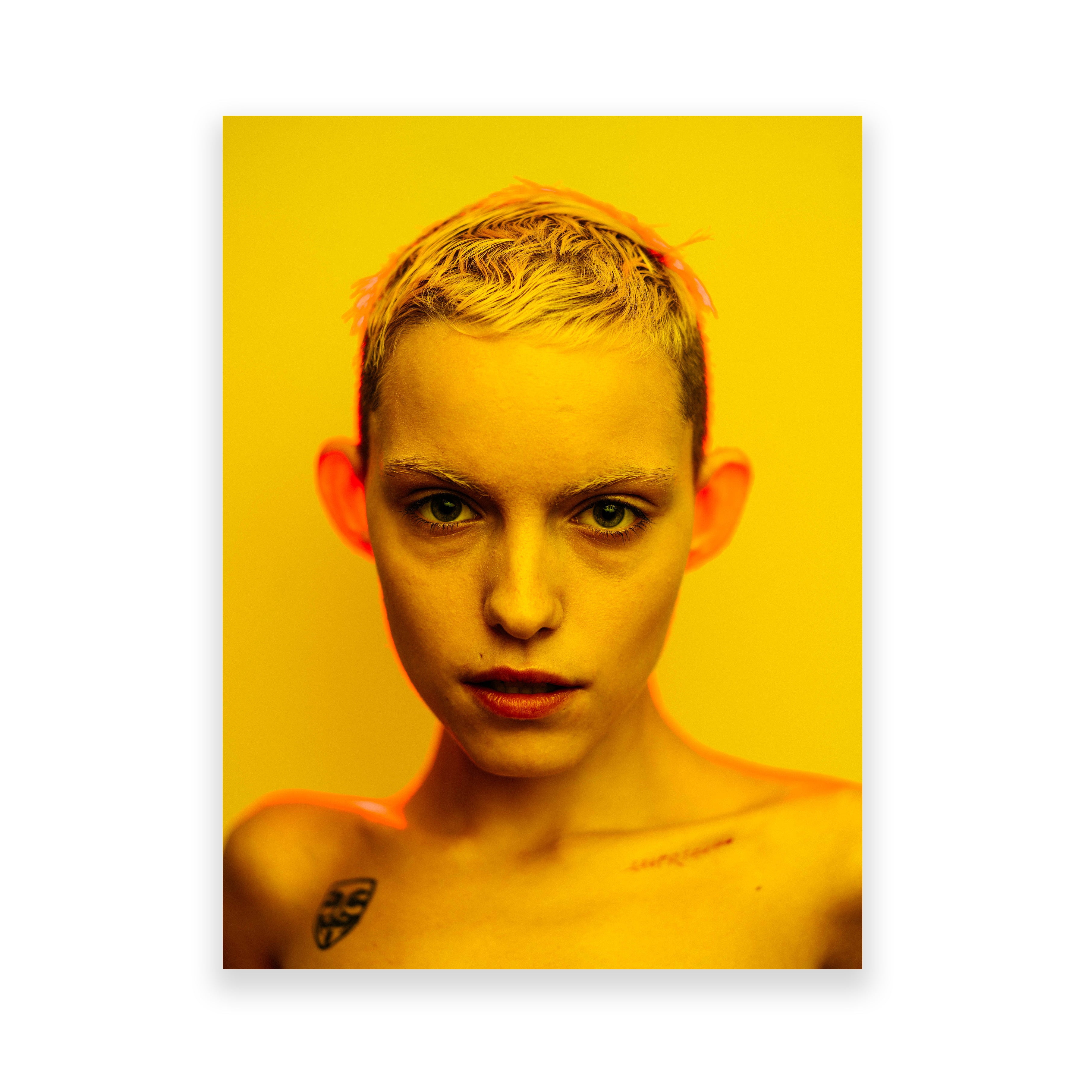 Right Through Me confronts with the models intense gaze. Yet, the portrait's warm bath of yellow and orange highlights creates an inviting atmosphere.