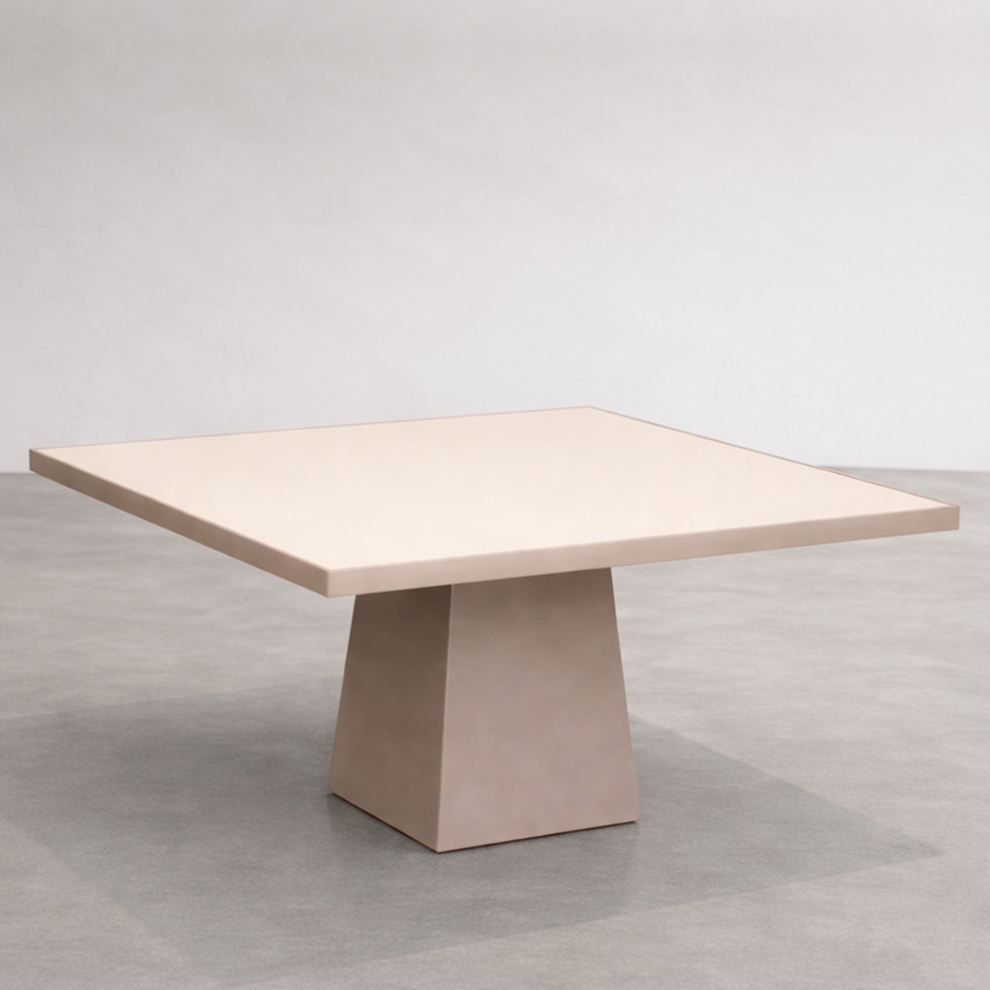 The Square Tapered Pedestal Dining Table features a crisp square top paired with a sculptural tapered base, creating a bold and balanced silhouette. Its clean lines and sharp edges lend a strong architectural presence, while the centered pedestal provides stability and visual clarity.