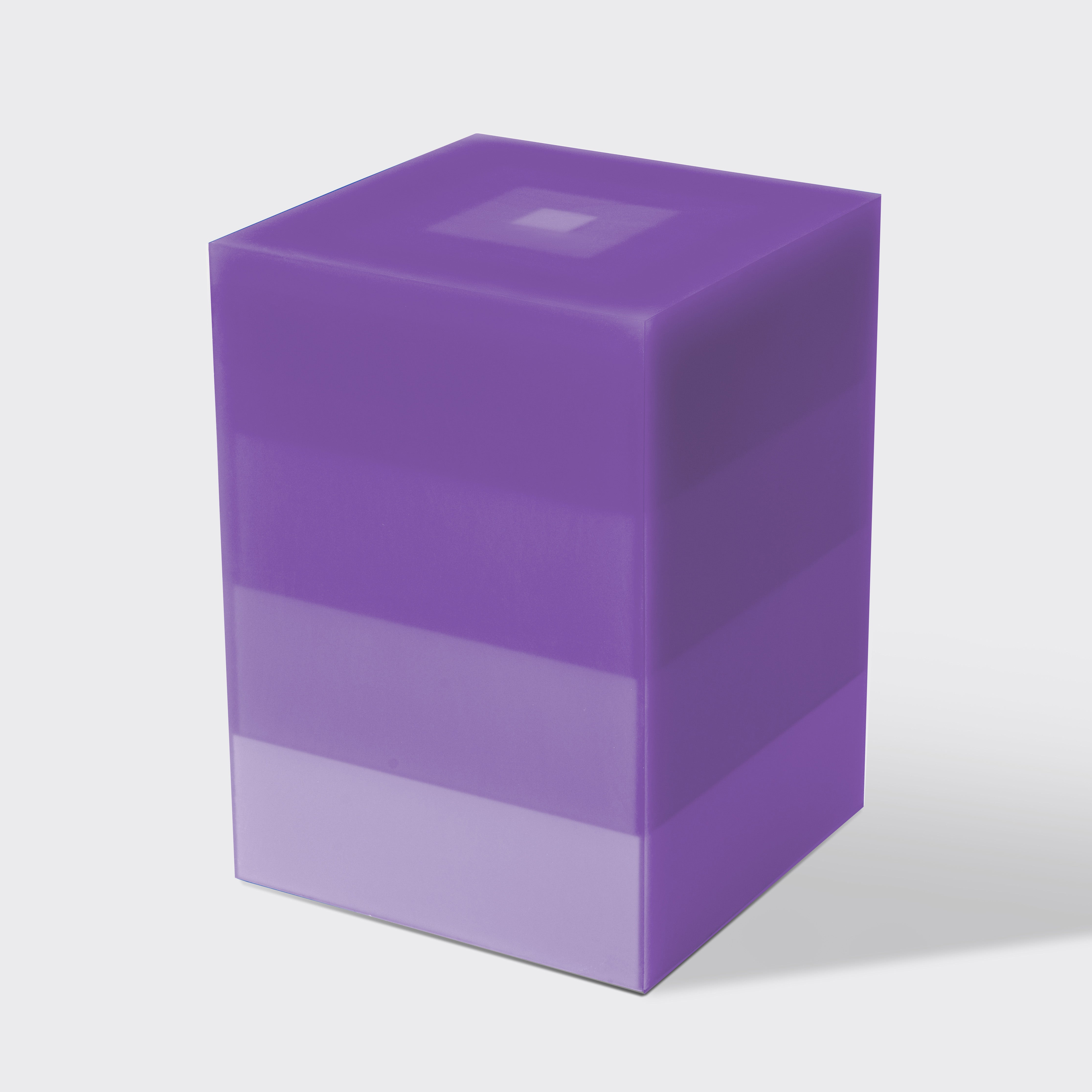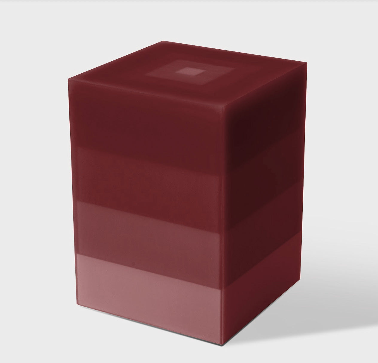 This stool/side table features four transitioning layers from a light to dark gray over a stepped white wood core. The interior and exterior facets are sanded to a buttery smooth finish giving the piece a soft glow throughout. The Scale series uses hand pigmented resin and varying depths of resin to create a scale of color saturation.
