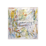 Textured yellow and white abstract painting by artist Joseph Conrad-Ferm. Represented by Tuleste Factory in New York City.