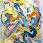 Mixed media abstract painting on canvas by NY-based artist Joseph Conrad-Ferm.