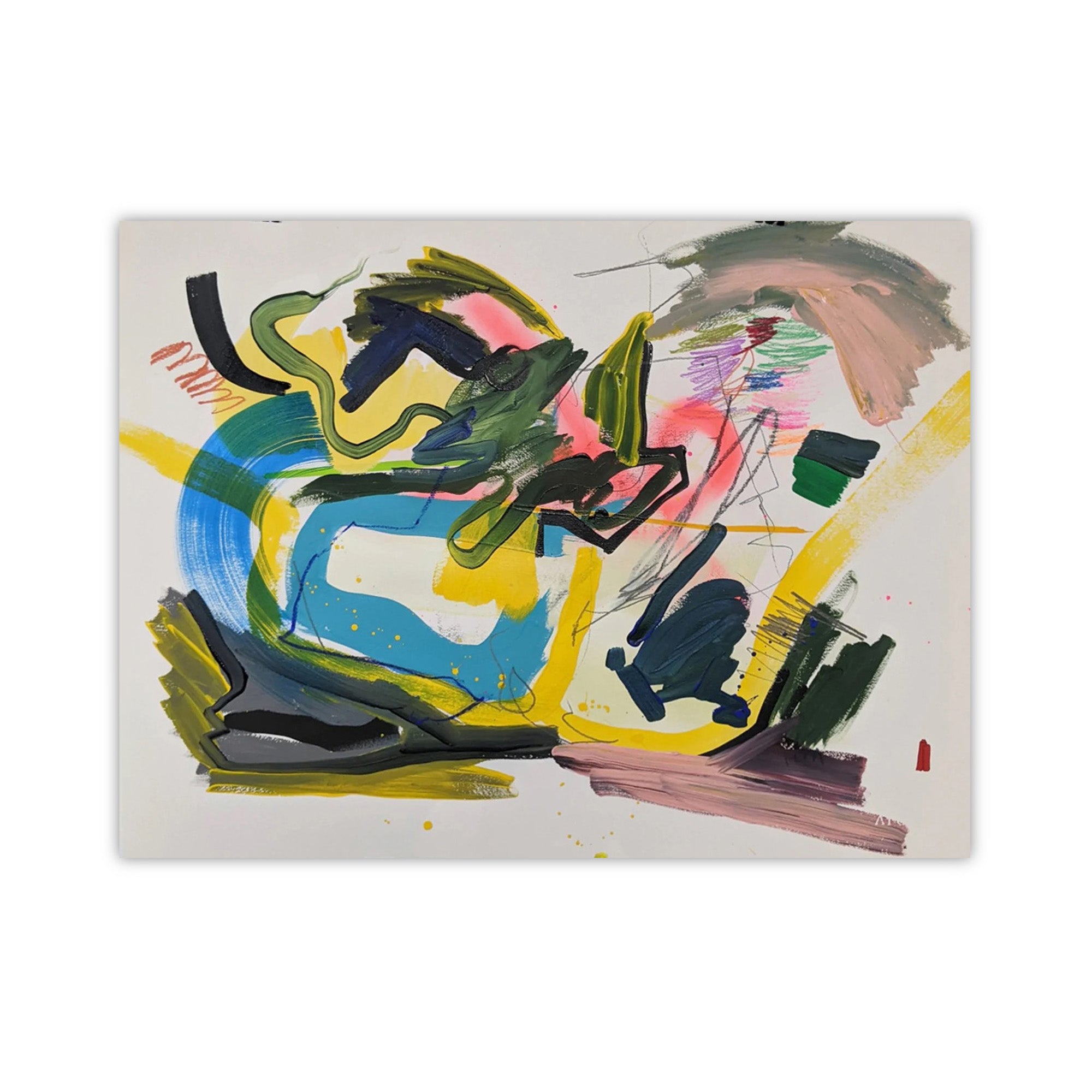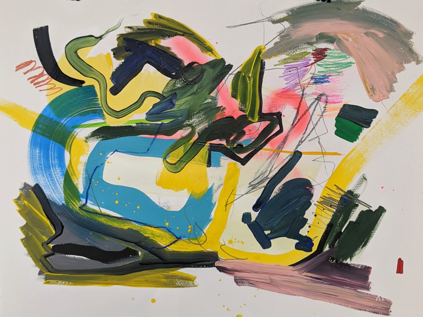 22.5x30 inch mixed medium painting on archival arches watercolor paper. Acrylic paint, spray paint, graphite, color pencil, and oil crayon.