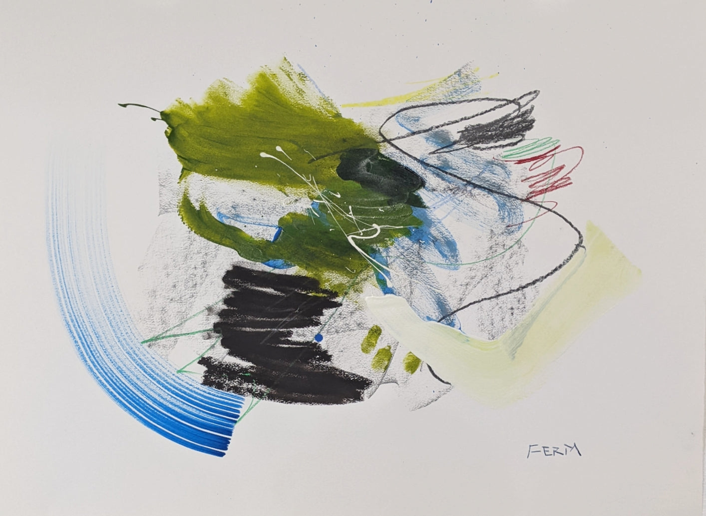 Mixed medium painting on archival Arches watercolor paper. 22.5x30 inches.