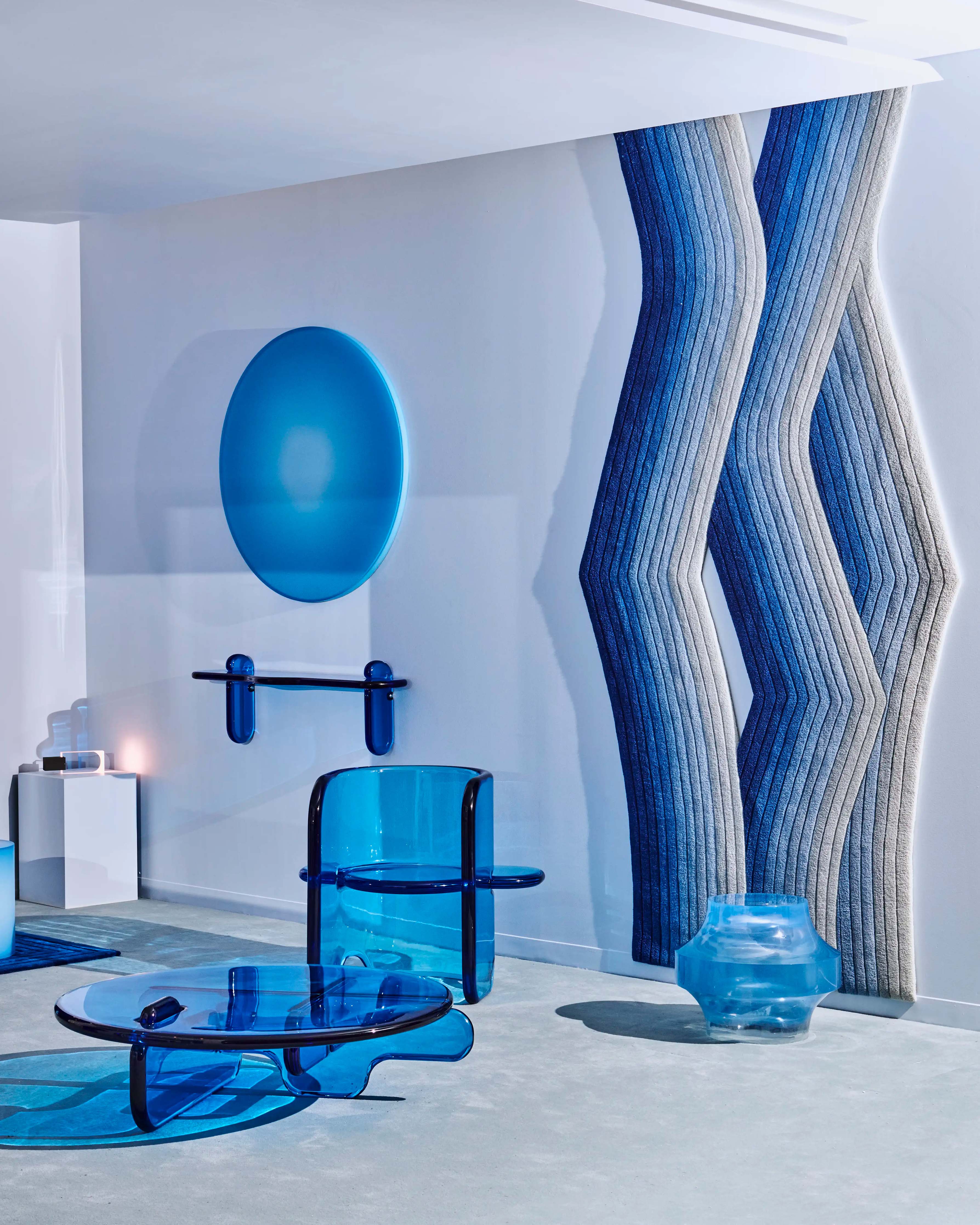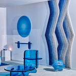 Pacíficos, Woven by hand in silk and wool, its curvilinear stripes articulated in the form of a gradient remind us of two human figures that subtly and peacefully lean gently against each other, merging with one another.