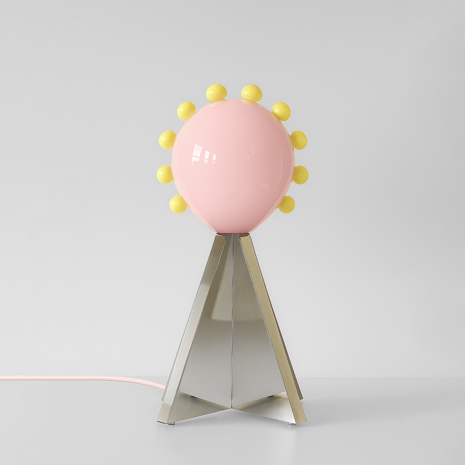 Hand-blown light pink and yellow glass, stainless steel with mirror finish.