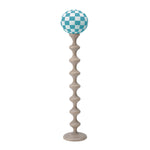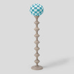 “The Hozkal Floor Lamp” is a striking, checkered glass balloon that brings a sense of whimsy and wonder to any space. This handcrafted sculptural piece evokes the dream of soaring in a hot air balloon. The bold contrast between the oversized glass head and the lathed wooden body introduces a refreshing, unexpected character to your home. The glass is meticulously handblown and hand-painted by skilled artisans in Turkey, and it can be made in a variety of colors. The wooden base is available in several finishes: light wood, blue-painted wood, or a deeper, darker wood option. As a collectible design and limited edition piece, the Hozkal Floor Lamp is sure to bring lasting joy to its owner.