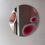 The Gumdrop Mirror features vibrant, candy-like orbs in rich cherry and blush tones, adding a sculptural element to this piece. This design elevates playfullness through functionality, making it a bold statement for any contemporary interior.