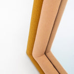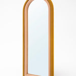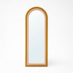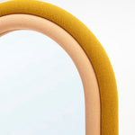 Mustard and pink upholstered arched frame with clear mirror.