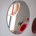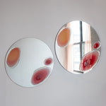 The Gumdrop Mirror features vibrant, candy-like orbs in rich cherry and blush tones, adding a sculptural element to this piece. This design elevates playfullness through functionality, making it a bold statement for any contemporary interior.