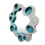 Crafted by multidisciplinary artist and self-taught metal fabricator Bert Furnari, this round mirror reflects his dedication to craftsmanship and innovative design. Each piece begins as 1/8” thick milled aluminum, which is meticulously cut, bent, and welded by Furnari himself, before being powder-coated for a flawless finish. Inspired by organic patterns found in nature, his mirrors feature visually striking retro-futuristic designs.