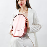 This piece is part of the Baggage Claim Mirrors series, which includes two full-length mirrors and this tabletop version, all available in six bold color combinations.