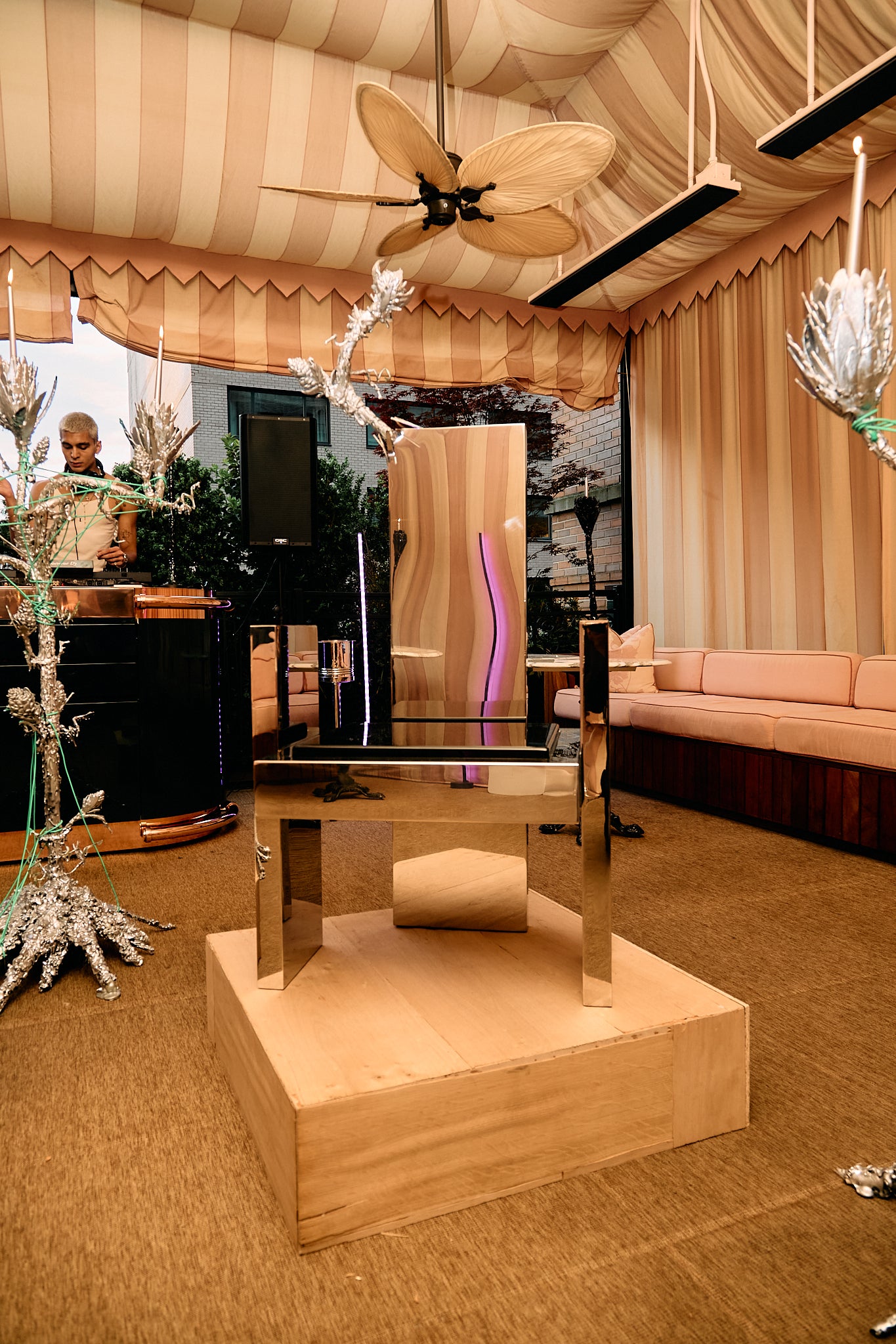 The Ovo Man chair is Roham Shamekh iconic chair model declined in all the capsule collections, from Face to Face to the newly unveiled Terminator collection. It's a signature chair part of the studio DNA. It truly embodies all the hybrids in the world, all the opposites that attract, such as the dichotomies of the world, the masculine in the feminine and vice versa. The metal structure and the interwoven elements of men and women reflect society at large and all its intricacies of new identities and cross-identities. Since the beginning of creation, it not only reflects today but also various aspects. It's about the striving for balance, which is key to achieving beauty, meaning harmony since ancient times. It’s very mathematical, not chaotic. This chair is the DNA of the studio reflecting the historical tug-of-war between opposites in civilizations, such as order and chaos, tradition and innovation, and the constant pursuit of balance amidst the conflicts. A silent chair sitting contemplating all the secrets of this worlds since its existence. (Chuuut!)