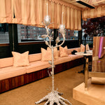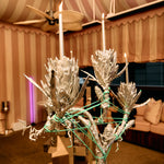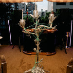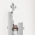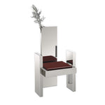 Chair in stainless steel, wood lacquer with an explosive plastic resin sculpture painted in chrome.