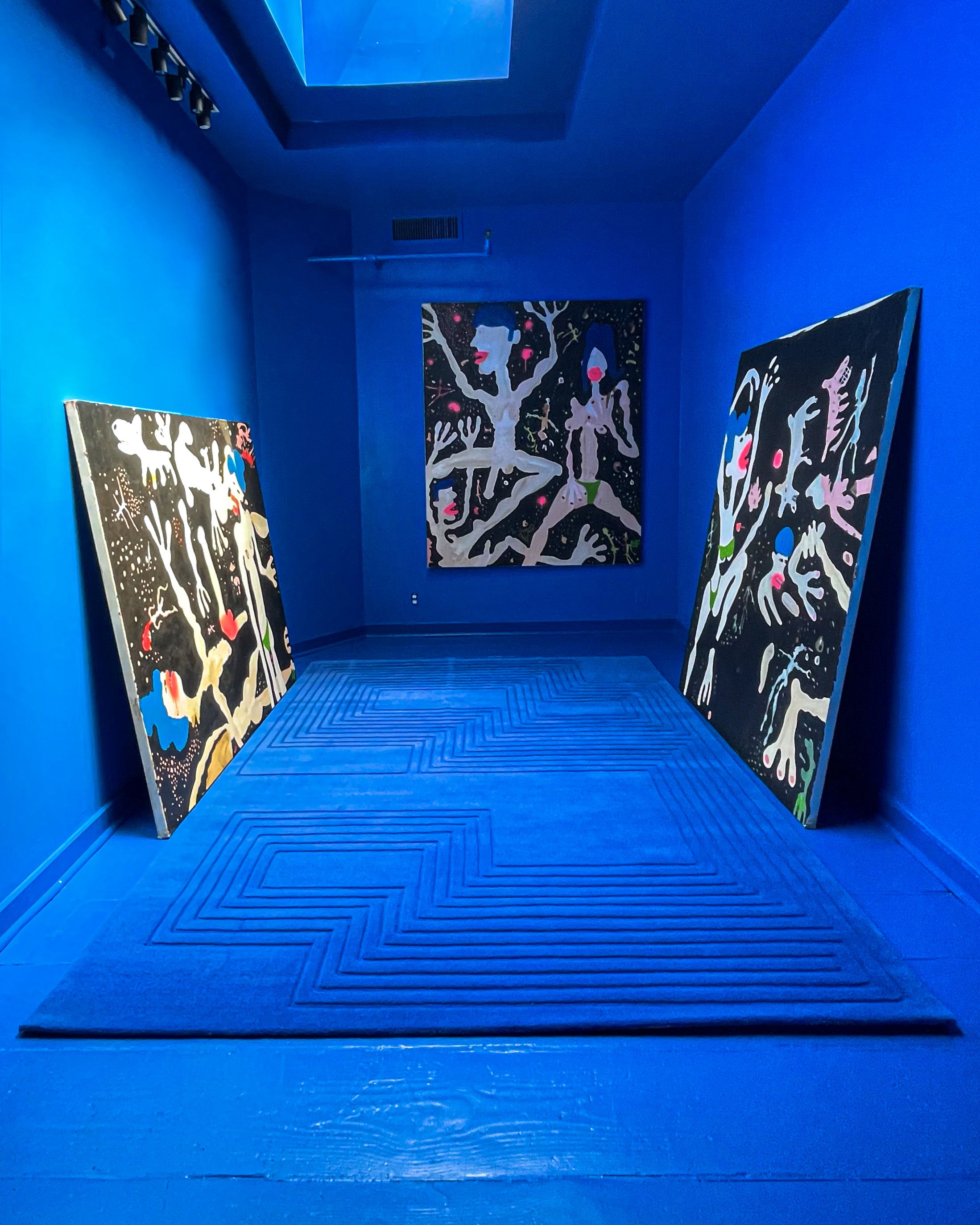 This Maze Rug is designed by Julia Tonconogy Pfeiffer and handmade in Nepal, using 70% Tibetan wool and 30% Cashmere. JT Pfeiffer designs this carpet to be displayed as a work of visual art. This art carpet highlights space with impactful visual effects, constructed by vivid color palettes and geometric patterns. Maze Rug accentuates space with graphic effects of puzzle-like paths depicted with fine lines that travel alongside and create open spaces that coincide throughout the plane.