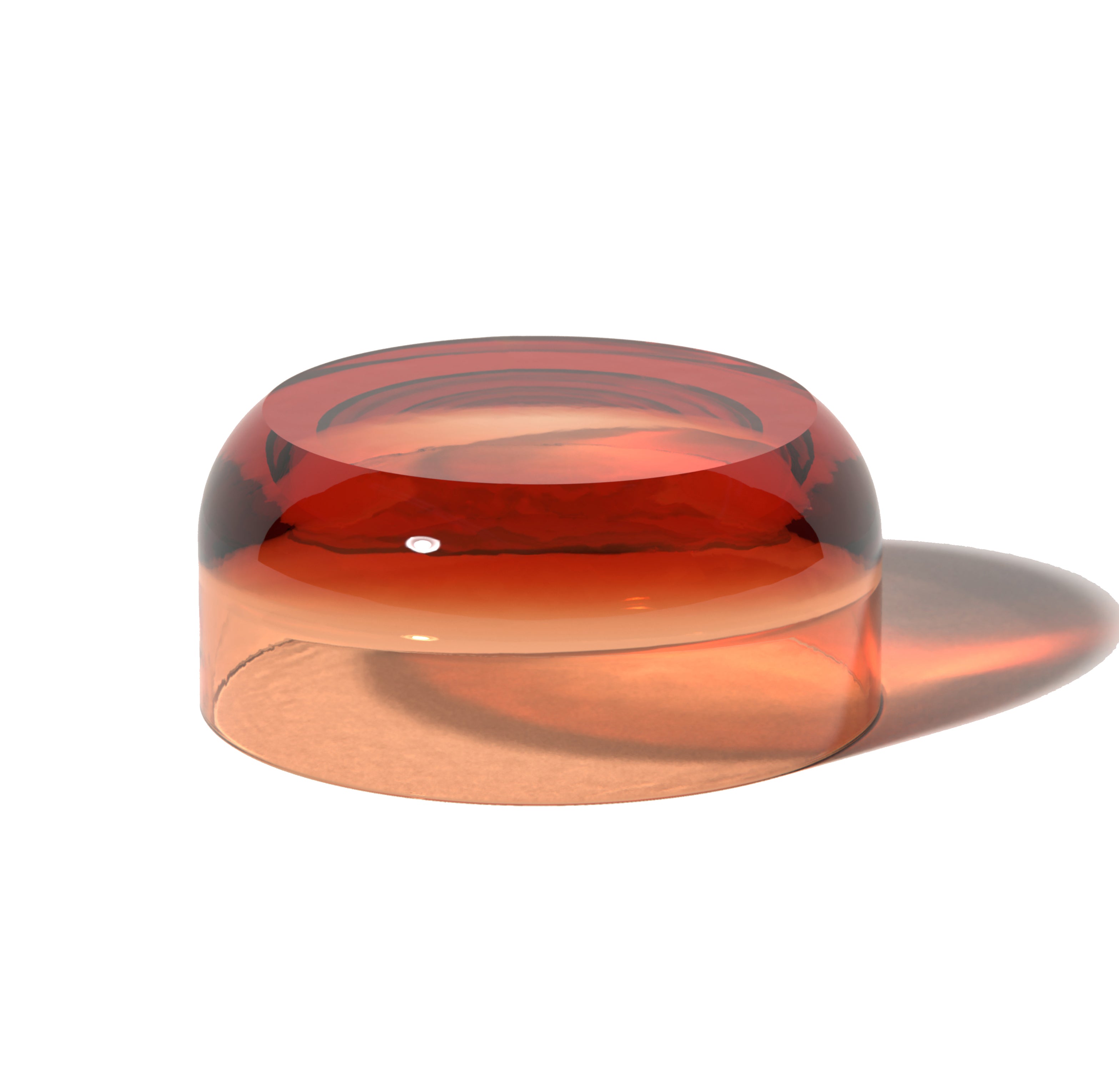 This Dew Drop is in a series of tables and stools which further play upon resin’s ability to effect light with volume and color. The thickness changes closer to the top creating a color gradient. Finishing with a lens porthole effect as you look down through the piece.