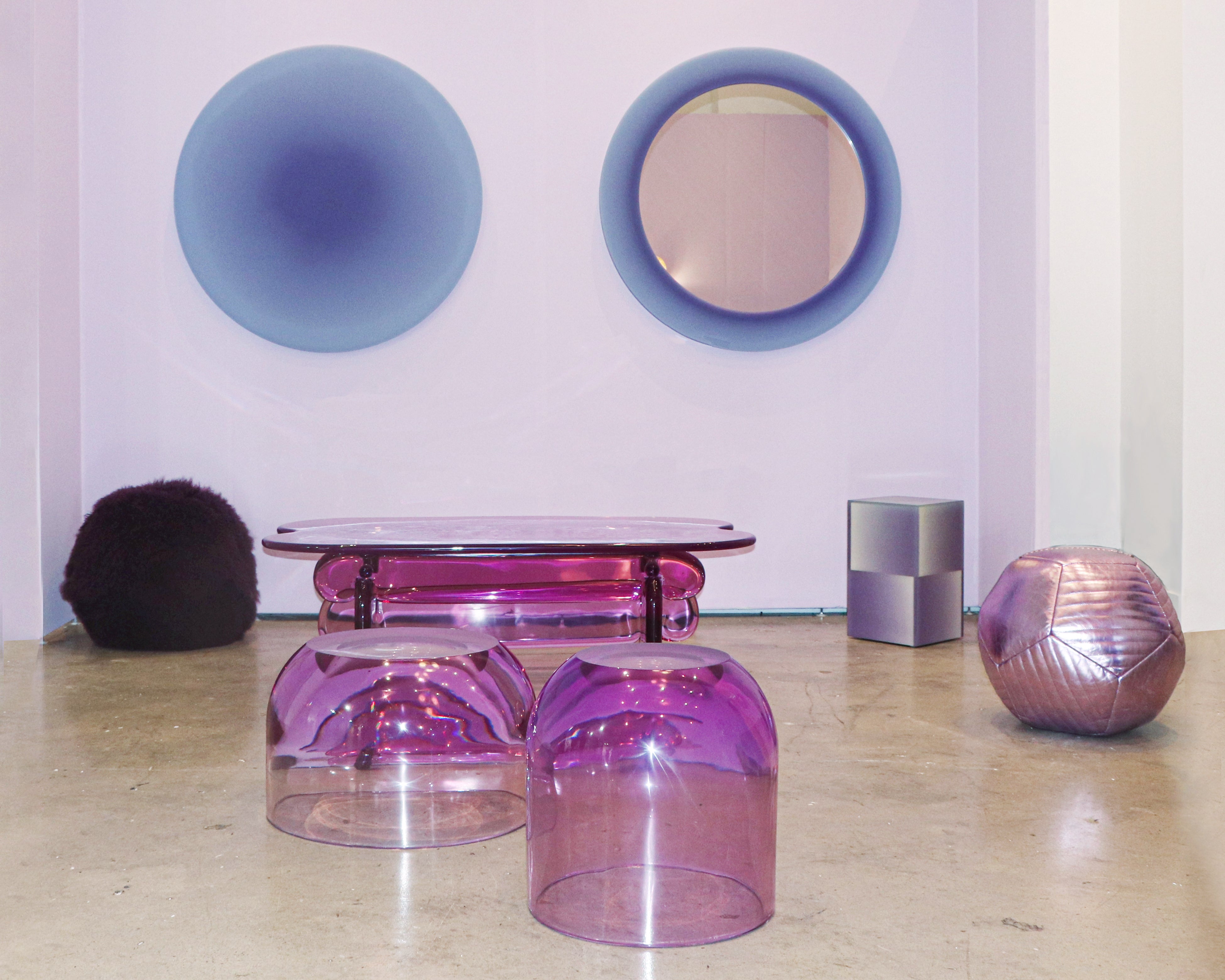 This Dew Drop is in a series of tables and stools which further play upon resin’s ability to effect light with volume and color. The thickness changes closer to the top creating a color gradient. Finishing with a lens porthole effect as you look down through the piece.