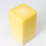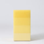 This stool/side table features four transitioning layers from a light to dark yellow over a stepped white wood core. The interior and exterior facets are sanded to a buttery smooth finish giving the piece a soft glow throughout. The Scale series uses hand pigmented resin and varying depths of resin to create a scale of color saturation.