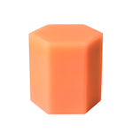This stool / side table features gradient style to transition in five layers from a deep opaque to water clear orange over a light orange resin core. The exterior facets are sanded to a buttery smooth finish while the top is buffed to a medium gloss. This stool plays with light and transparency to create a piece that changes with its environment.