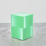 Multi-layer side table in single or multi-color options. Utilizing a medley of gradual saturation shifts in different directions, the effects in this piece manage to both guide the eye, yet perplex it simultaneously. The depth effects created instruct the eye to scan its gaze along the various saturation shifts
