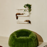 A soft, rounded chair inspired by the gentle rise of a grass-covered hill. Hand-crafted from sculpted wood and foam, then upholstered in rich mohair, it offers a grounded softness that feels both natural and nurturing. Designed to hold the body with quiet support, this chair brings the calm of open landscapes into the home. A place to rest, breather and slow down.