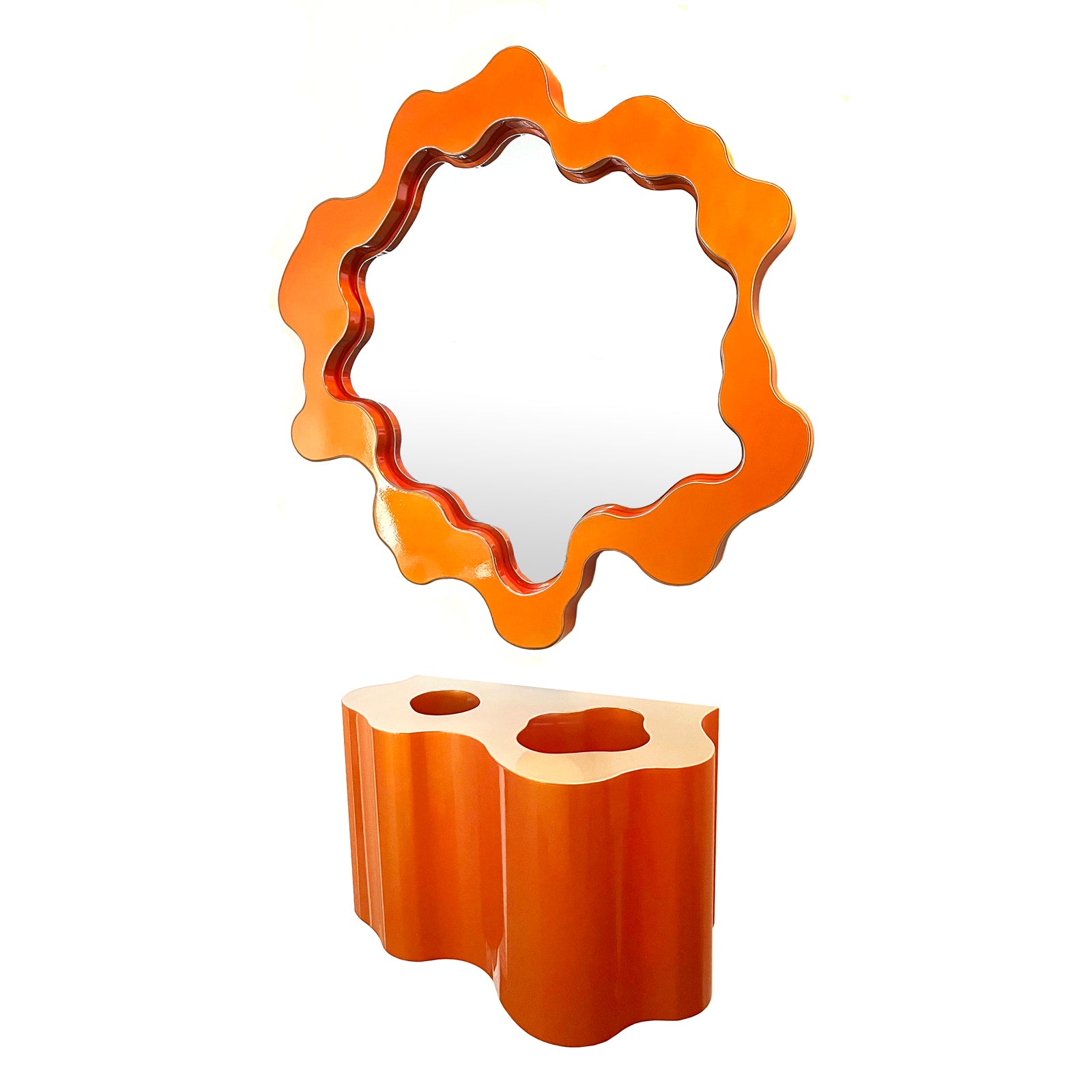 Crafted by multidisciplinary artist and self-taught metal fabricator Bert Furnari, these aluminum side tables and mirrors reflect his dedication to craftsmanship and innovative design. Each piece begins as 1/8” thick milled aluminum, which is meticulously cut, bent, and welded by Furnari himself, before being powder-coated for a flawless finish. Inspired by organic patterns found in nature, these tables feature visually striking retro-futuristic designs.