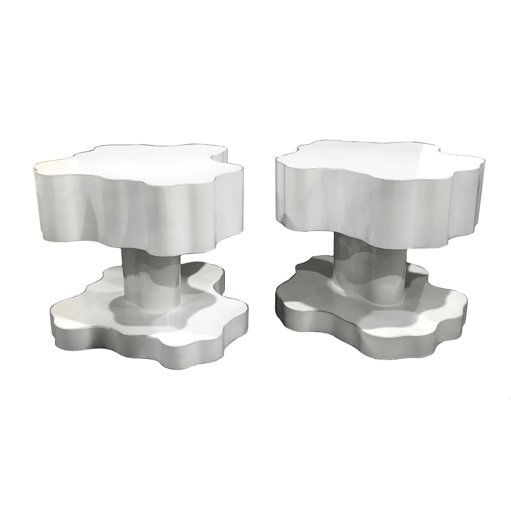 Crafted by multidisciplinary artist and self-taught metal fabricator Bert Furnari, these aluminum side tables reflect his dedication to craftsmanship and innovative design. Each piece begins as 1/8” thick milled aluminum, which is meticulously cut, bent, and welded by Furnari himself. The tables' cloud-like shapes and white powder-coated finish draw inspiration from nature's fluid forms.