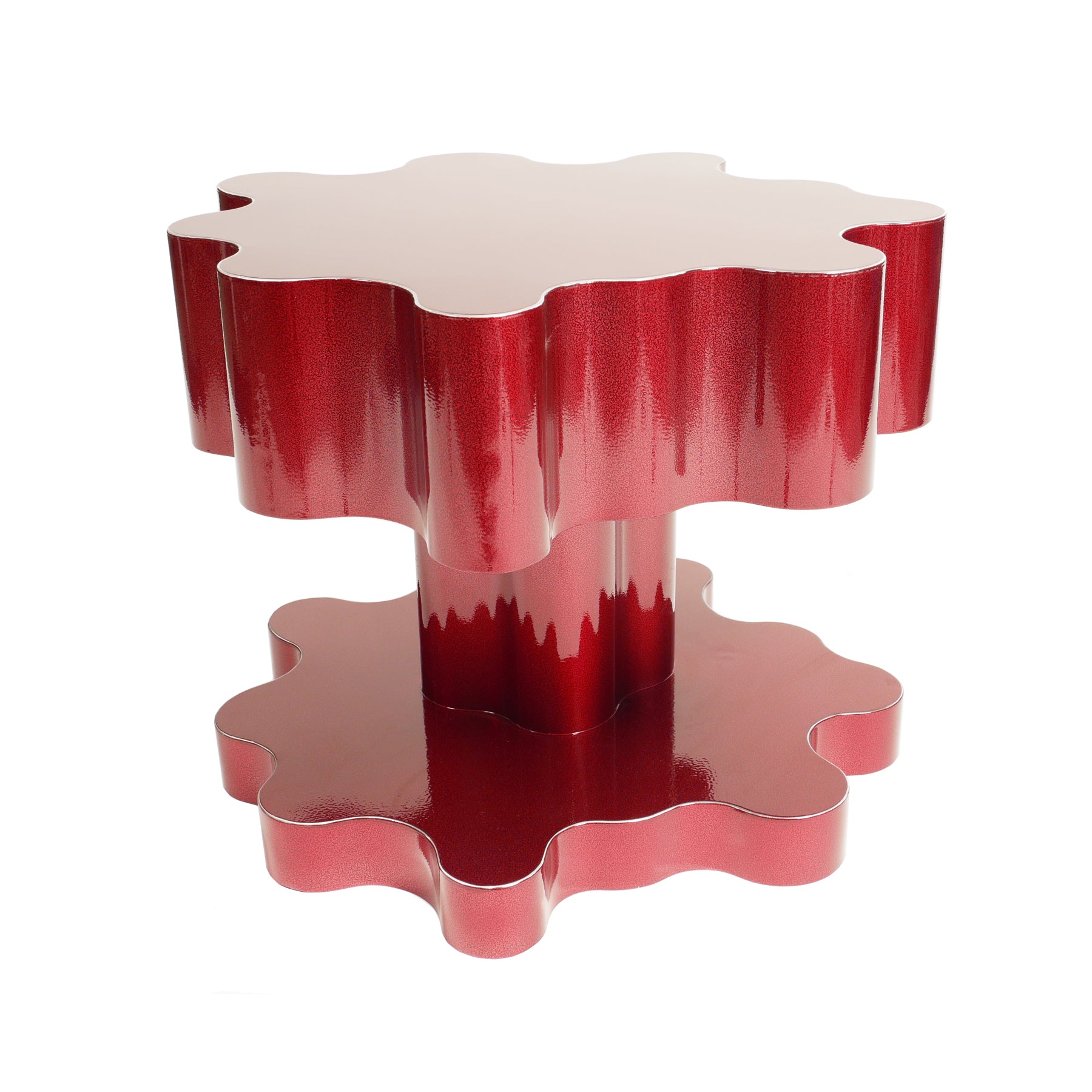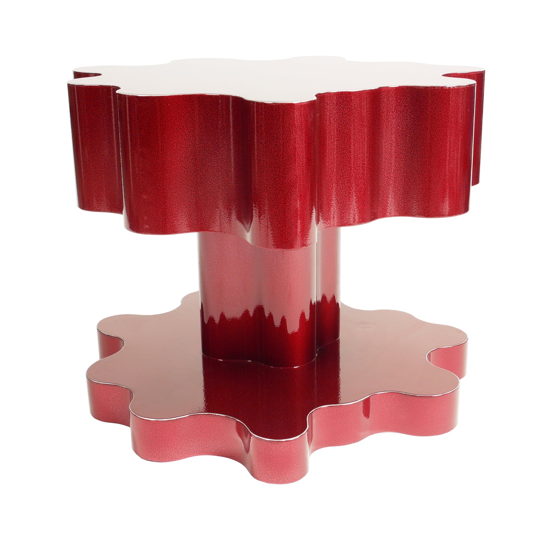 Crafted by multidisciplinary artist and self-taught metal fabricator Bert Furnari, these aluminum side tables reflect his dedication to craftsmanship and innovative design. Each piece begins as 1/8” thick milled aluminum, which is meticulously cut, bent, and welded by Furnari himself, before being powder-coated for a flawless finish. Inspired by organic patterns found in nature, these tables feature visually striking retro-futuristic designs.