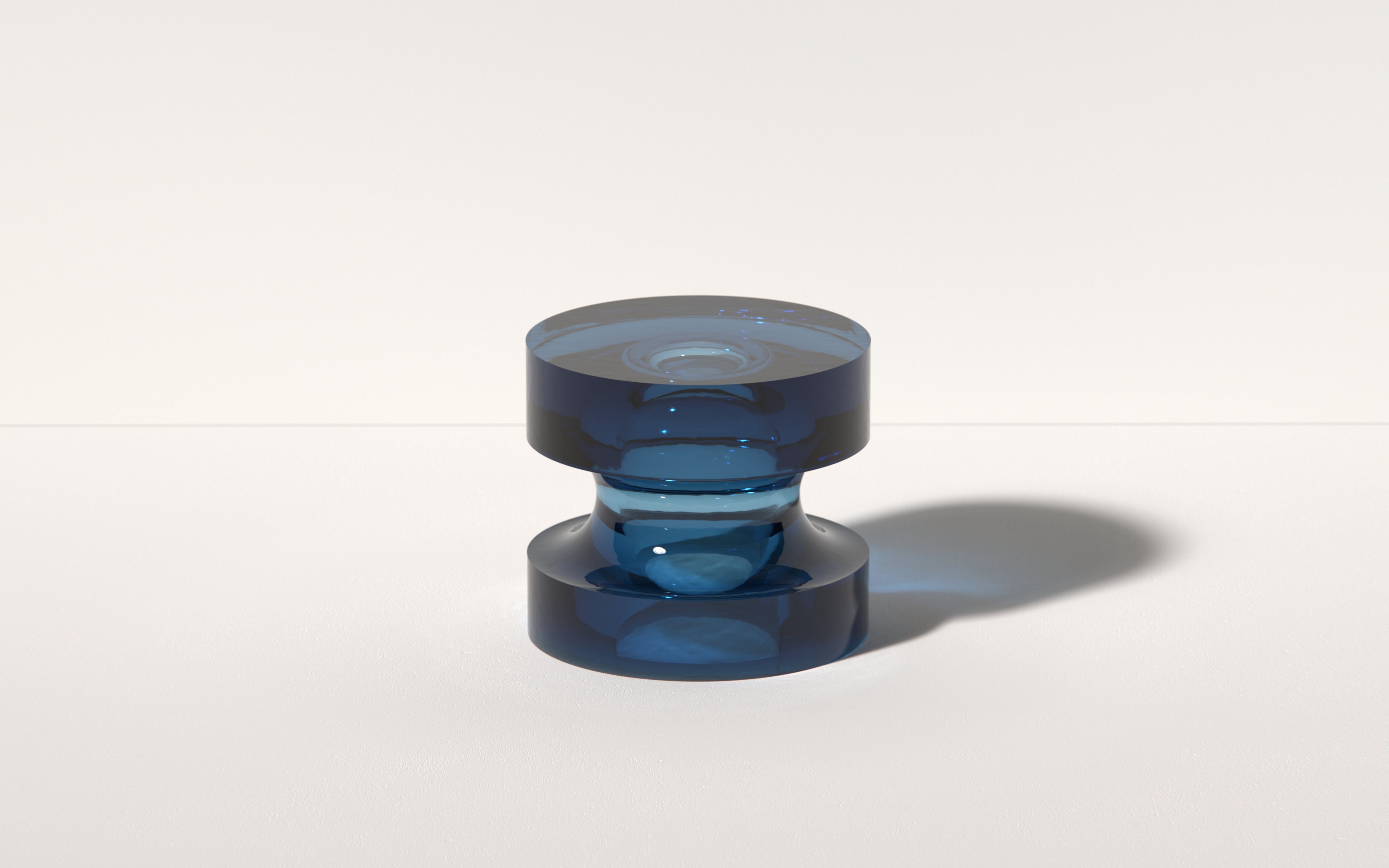 Like its predecessor, the Dew Drops, the Echo Series is a collection of small tables made from solid cast resin. This material allows for magnificent bending of light and the play of colors. Like a serene pool of water, the flat top contrasts with the body underneath which as you move ripples and bends the imagery and background that come through. The shapes are inspired by harmonies and the feeling of equilibrium that come with them.