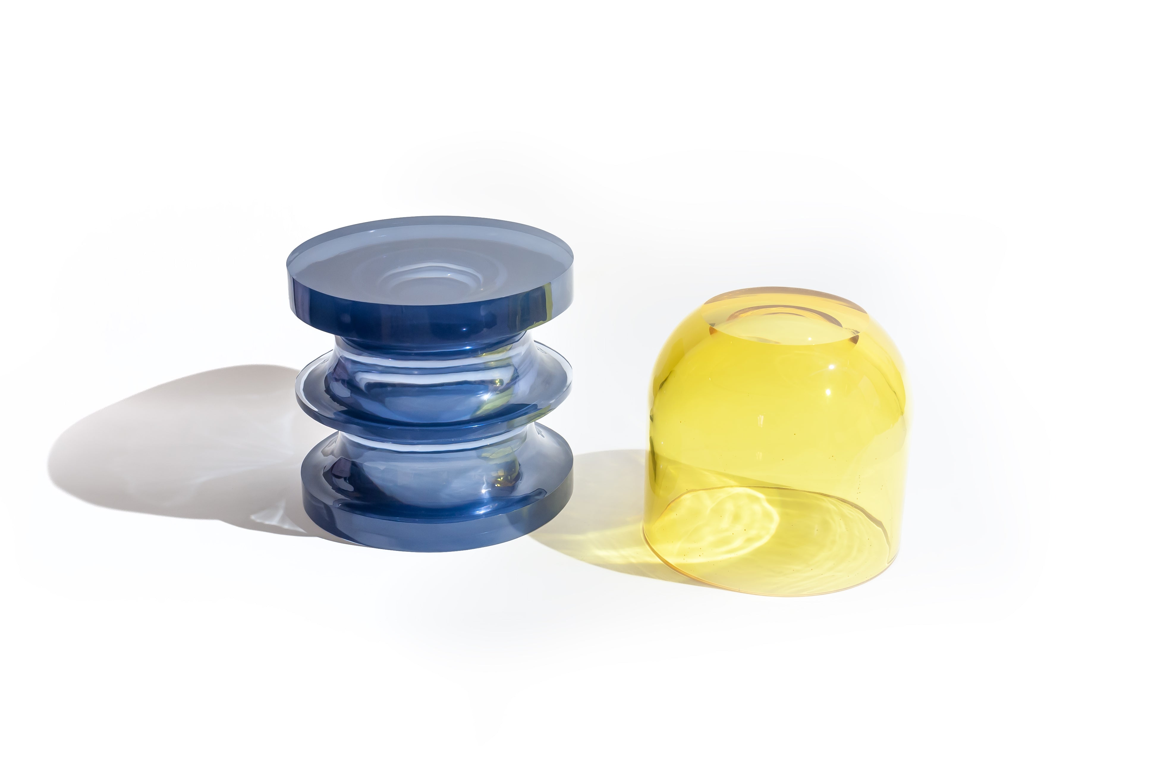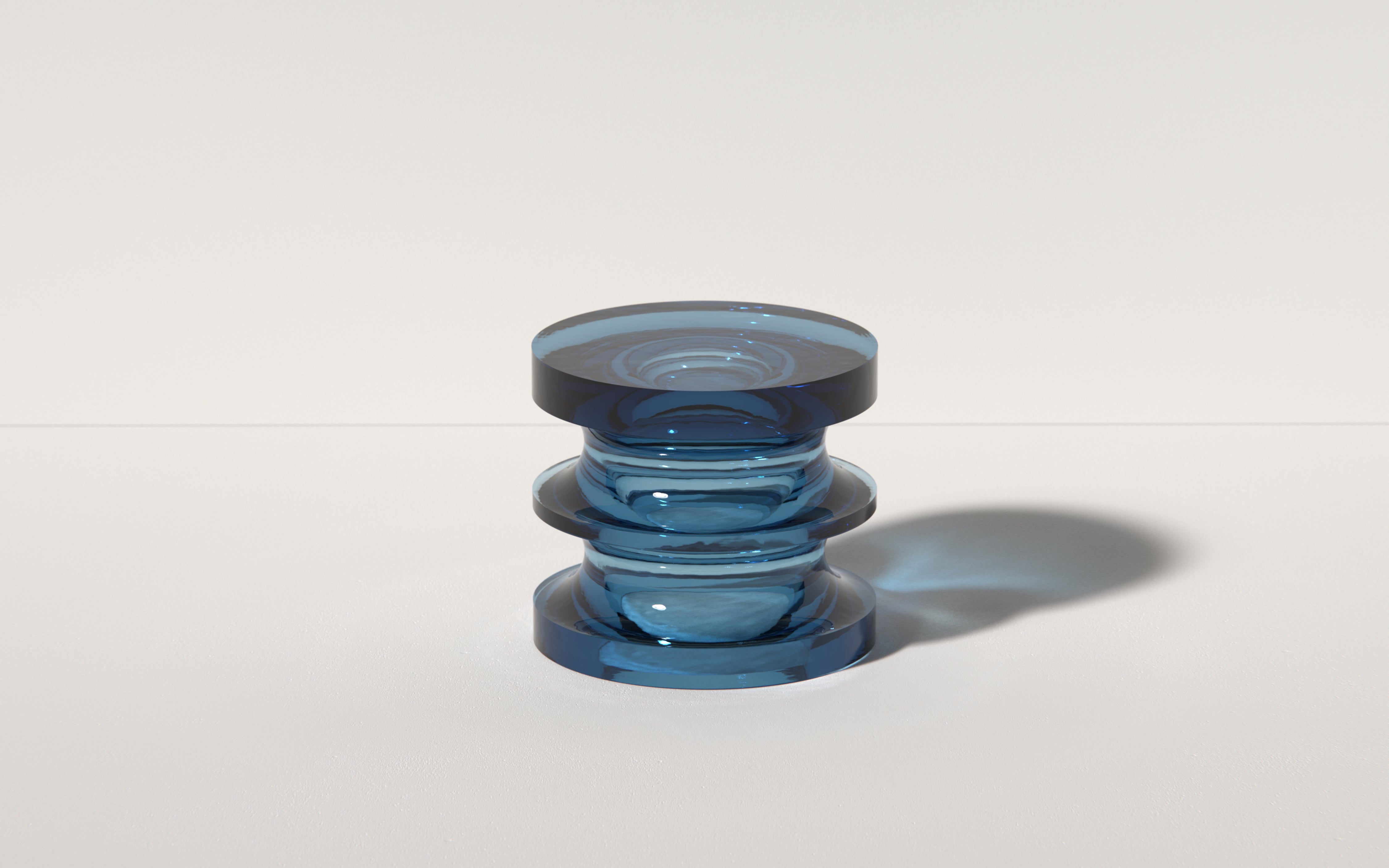 Like its predecessor, the Dew Drops, the Echo Series is a collection of small tables made from solid cast resin. This material allows for magnificent bending of light and the play of colors. Like a serene pool of water, the flat top contrasts with the body underneath which as you move ripples and bends the imagery and background that come through. The shapes are inspired by harmonies and the feeling of equilibrium that come with them.