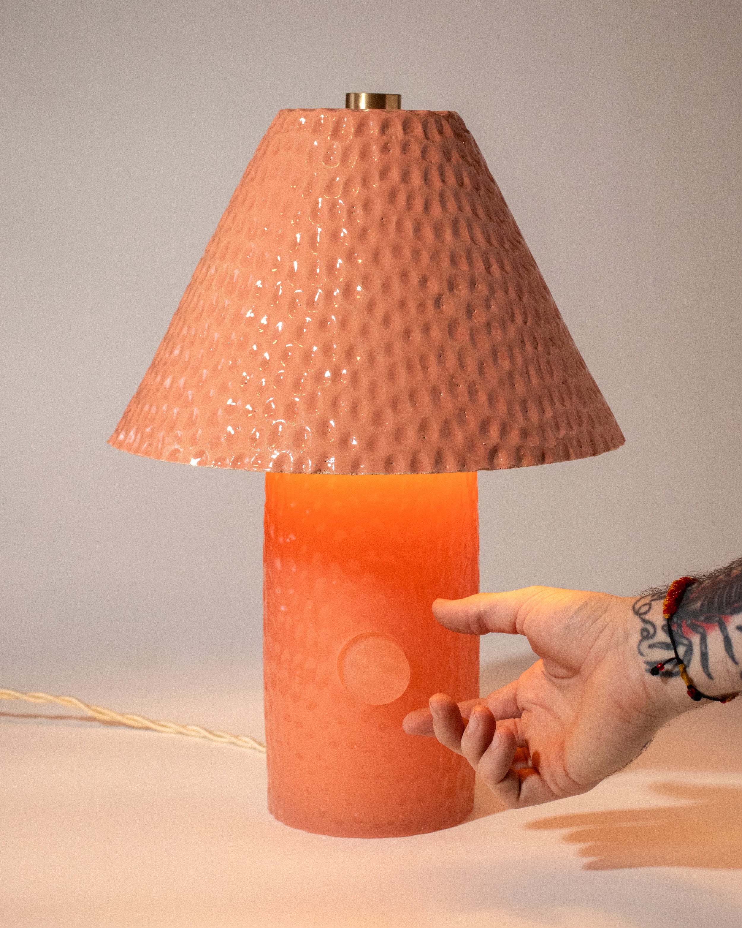 The Java Lamp was born out of a friendship between Facture Studios and Streicher Goods. Ethan lived on Java Street, where he’d pass Quincy’s studio each day while walking his dogs. What started as casual hellos grew into conversations, then evenings spent over drinks, and eventually a collaboration. The lamp reflects that spirit—stoneware ceramic and translucent resin brought together, the base mirroring the hand-worked texture of the clay while light drifts softly through it. Its name honors the street where it all began.