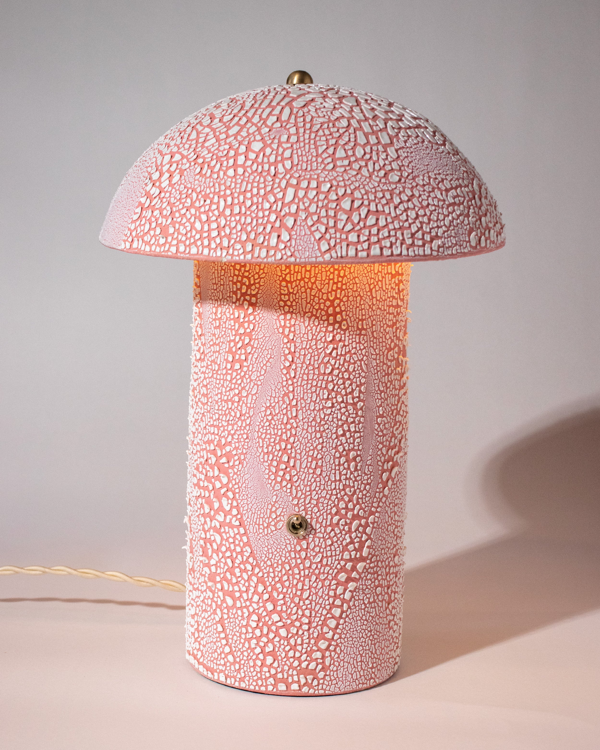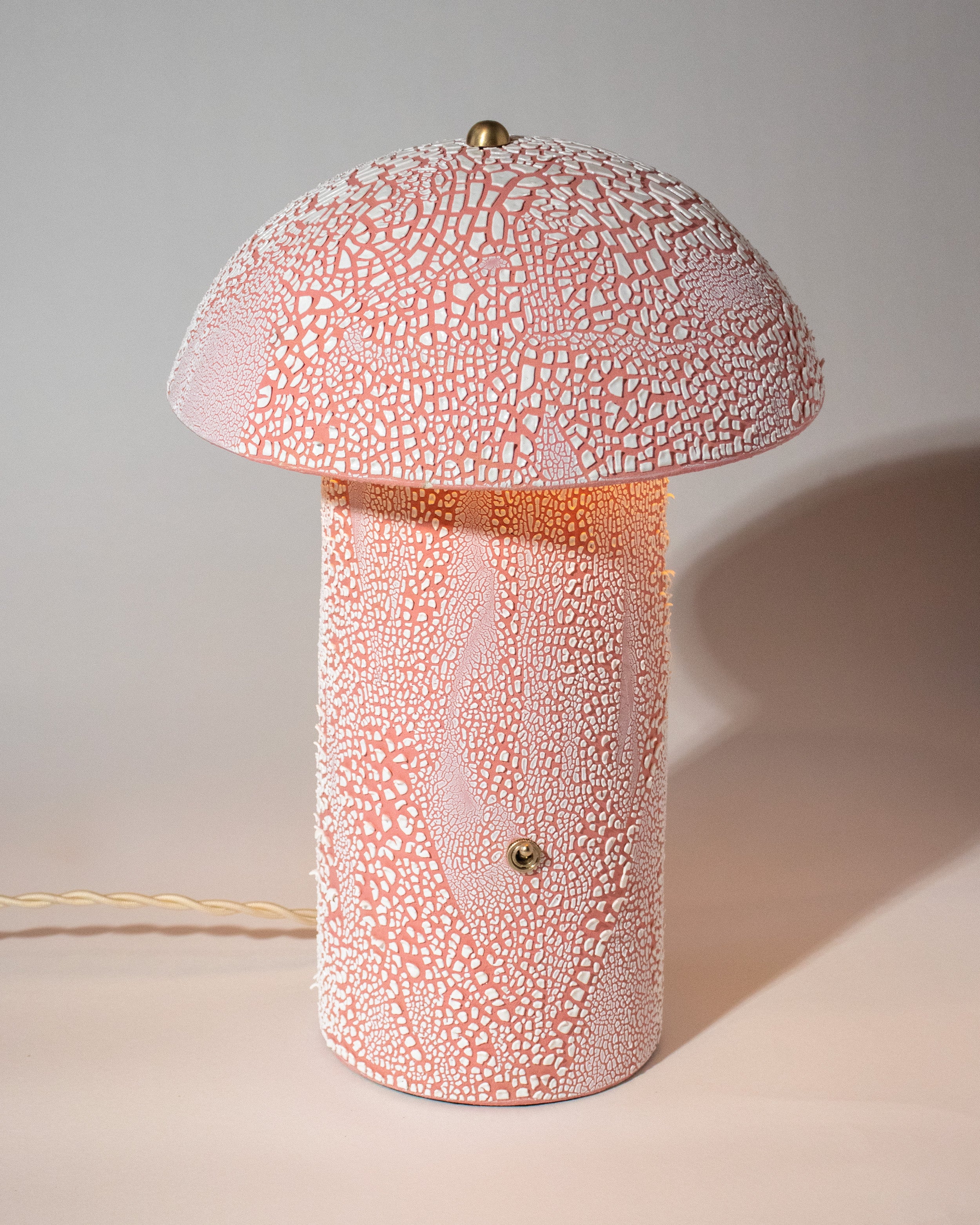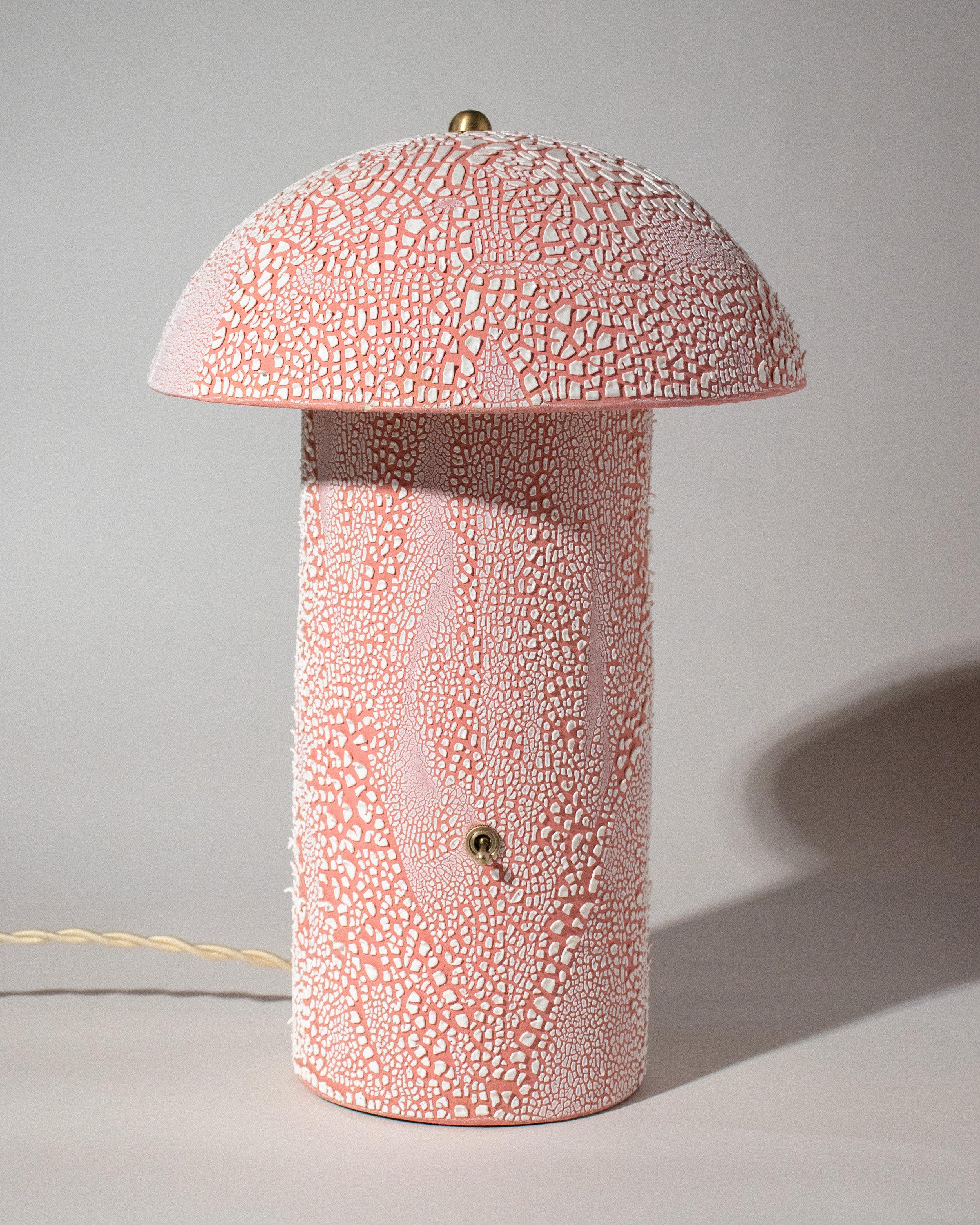 Pink Crackle Mushroom Table Lamp by Streicher Goods