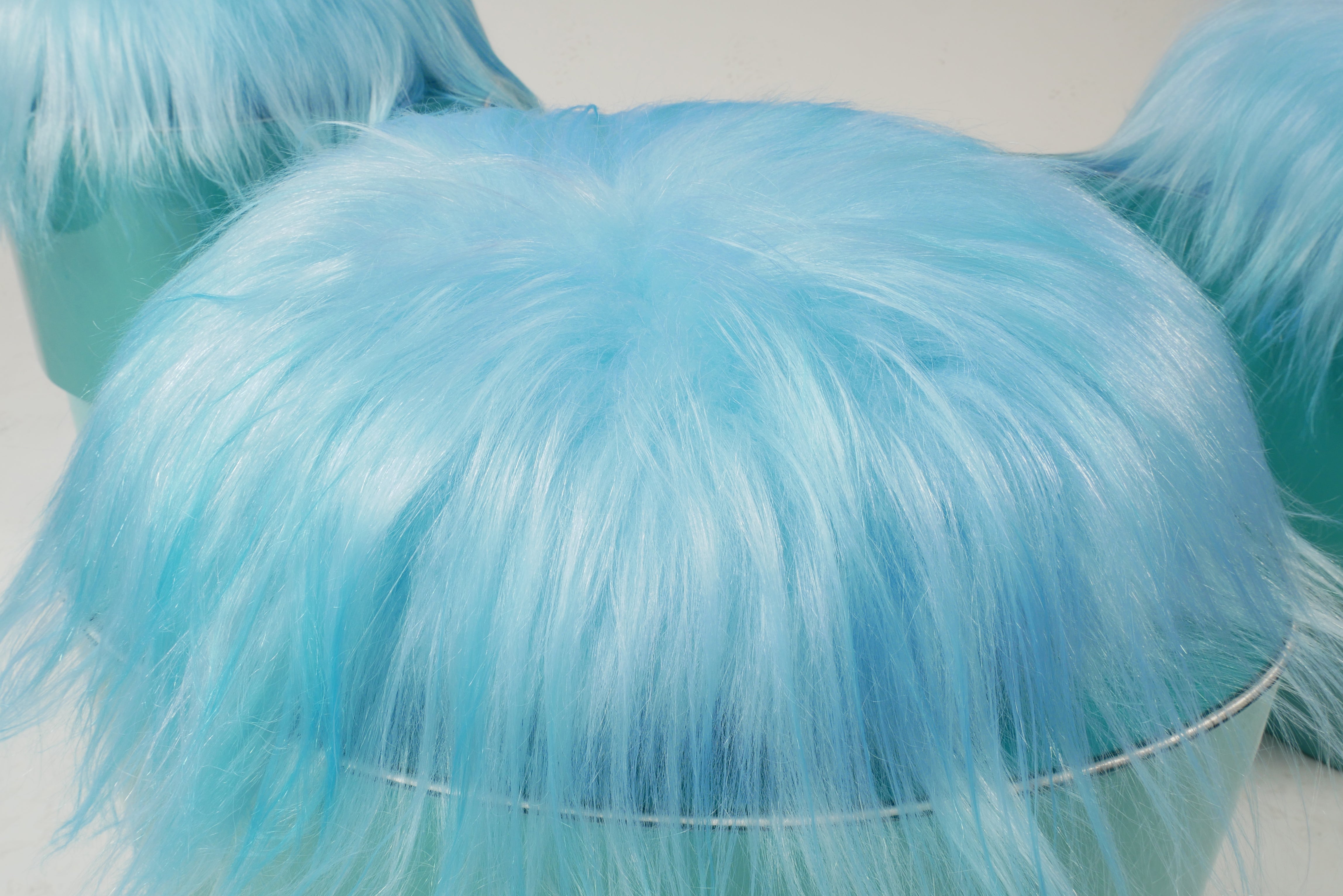 Powder-coated Aluminum, Oak Plywood Insert, Ironed Goat Fur.