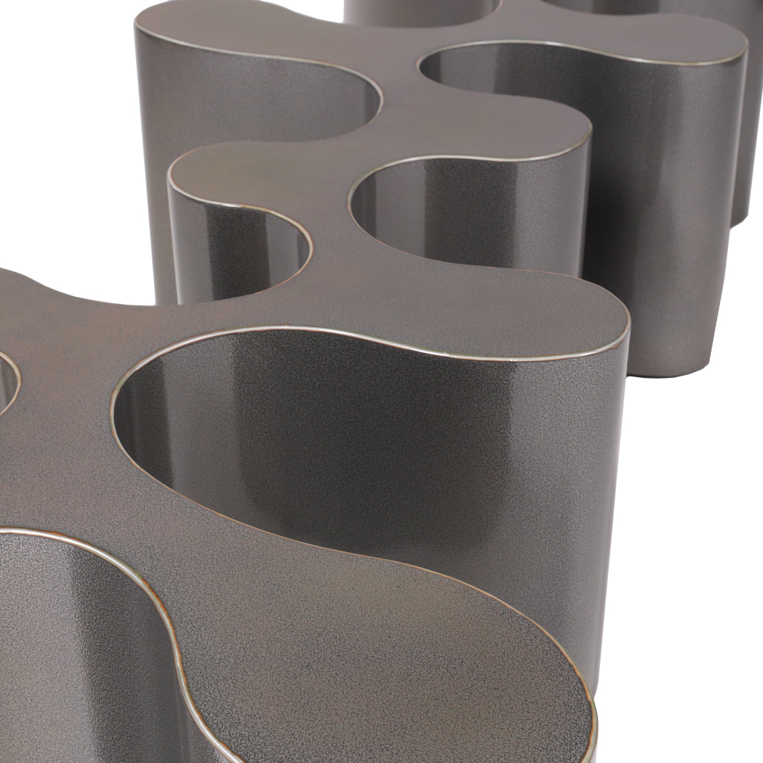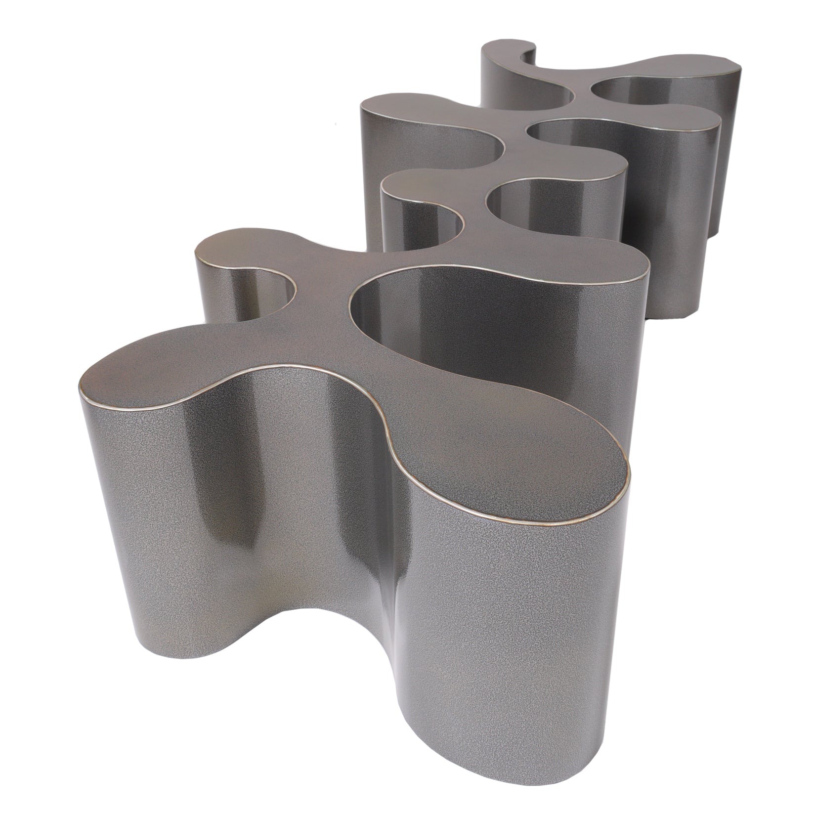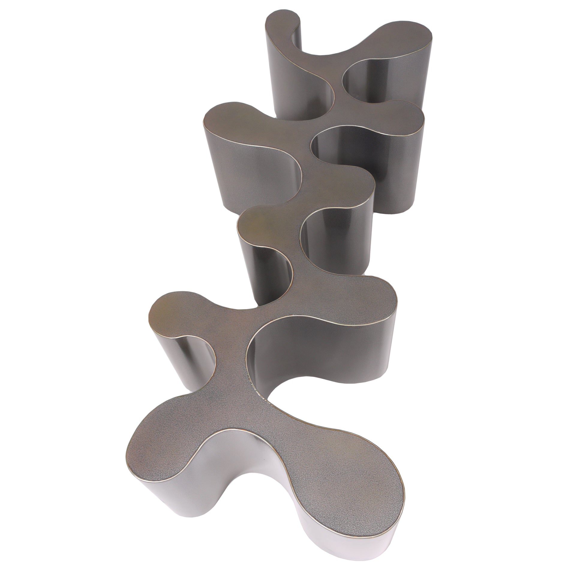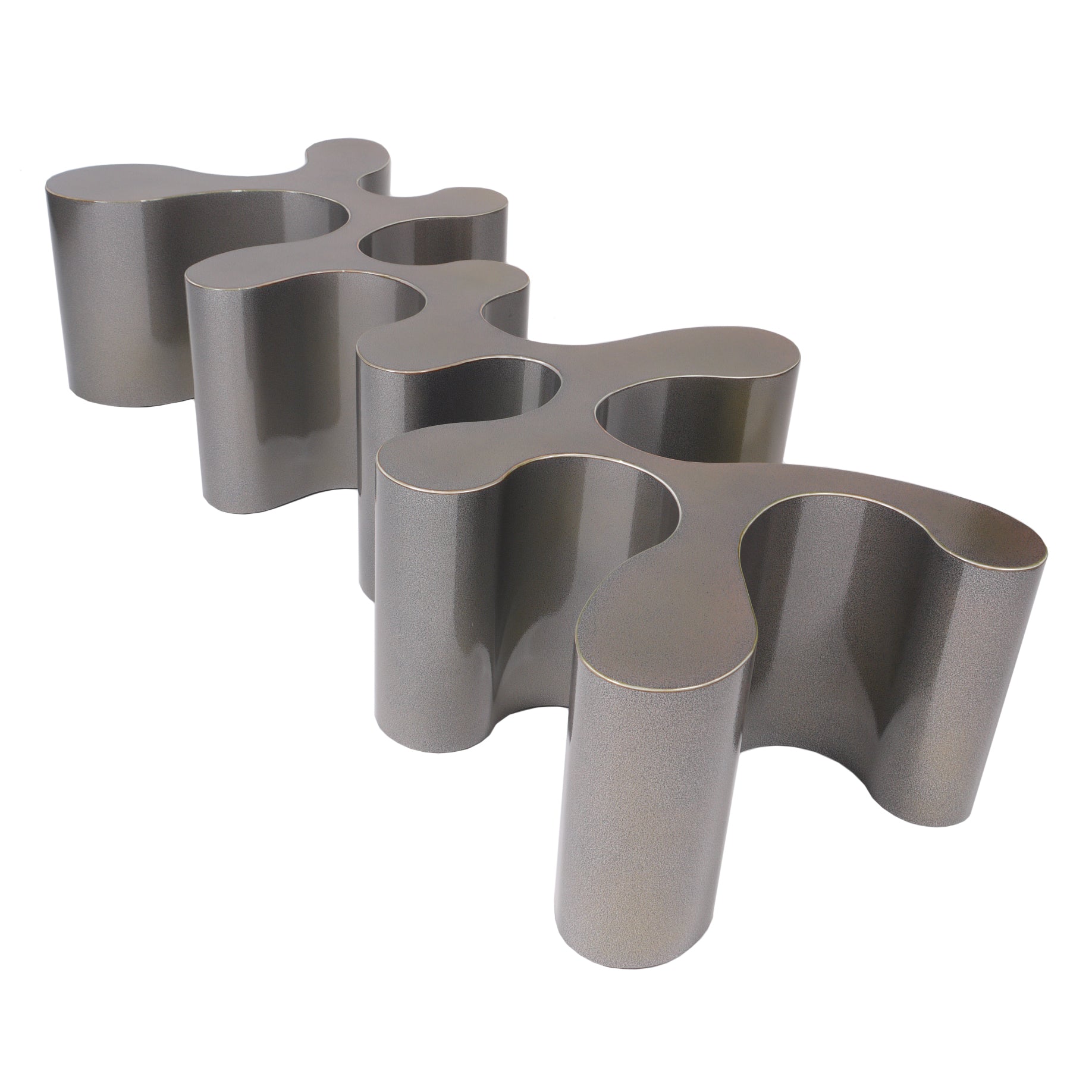 Crafted by multidisciplinary artist and self-taught metal fabricator Bert Furnari, this aluminum coffee table reflects his dedication to craftsmanship and innovative design. Each of his pieces begins as 1/8” thick milled aluminum, which is meticulously cut, bent, and welded by Furnari himself, before being powder-coated for a flawless finish. Inspired by organic patterns found in nature, this table features visually striking retro-futuristic designs.